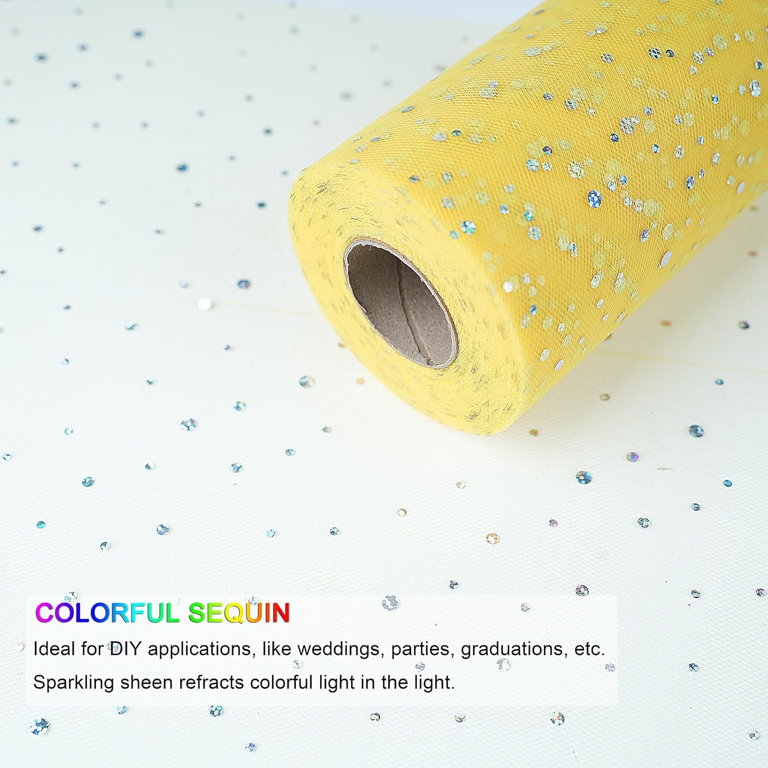 Glitter Tulle Rolls, 6” by 50 Yards (150FT) Sequin Tule Netting Fabric Tulle for Tutu Skirts Sewing Birthday Wedding Party Decoration (Yellow)