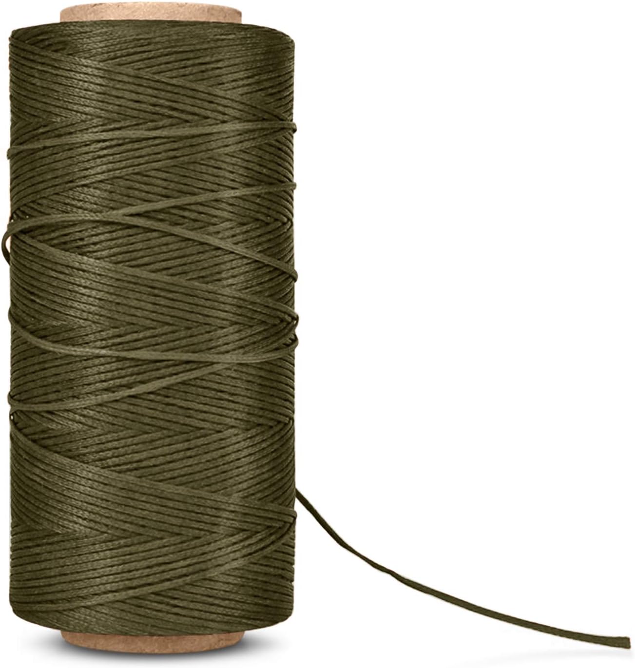 Flexzion Waxed Thread - 284 Yards (260 Meters) 0.8mm 150D Polyester Wax Thread for Leather Sewing, Bookbinding, Stitching, Repairing, Beading, & DIY Projects (Army Green)