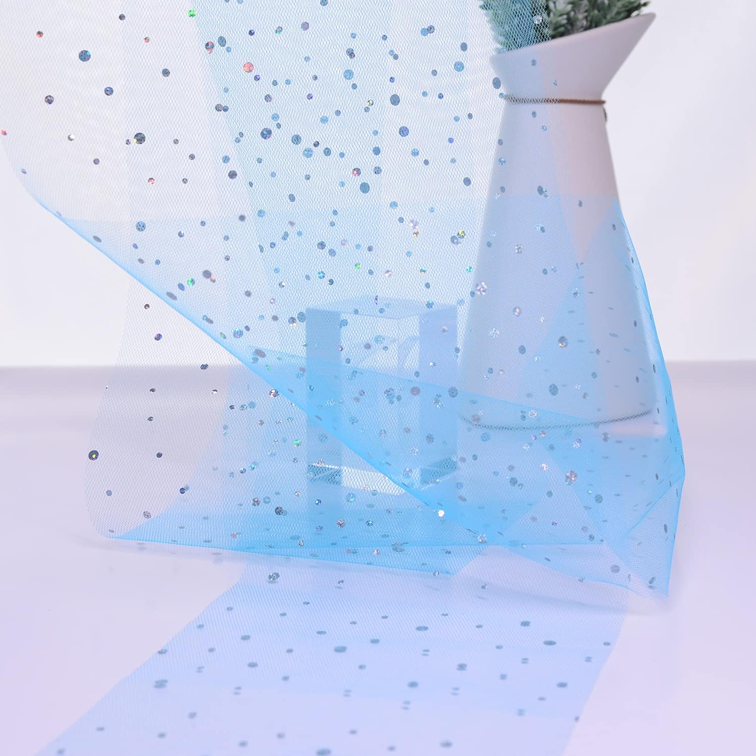- 🎀【Premium Material】Made of 100% Soft Polyester, flexible diamond netting, lightweight / fine glitter tulle bolt, The fabric is easy to shape and use. Just cut the length you want to decorate. Tulle doesn't require stitching or finishing, it won't unravel!