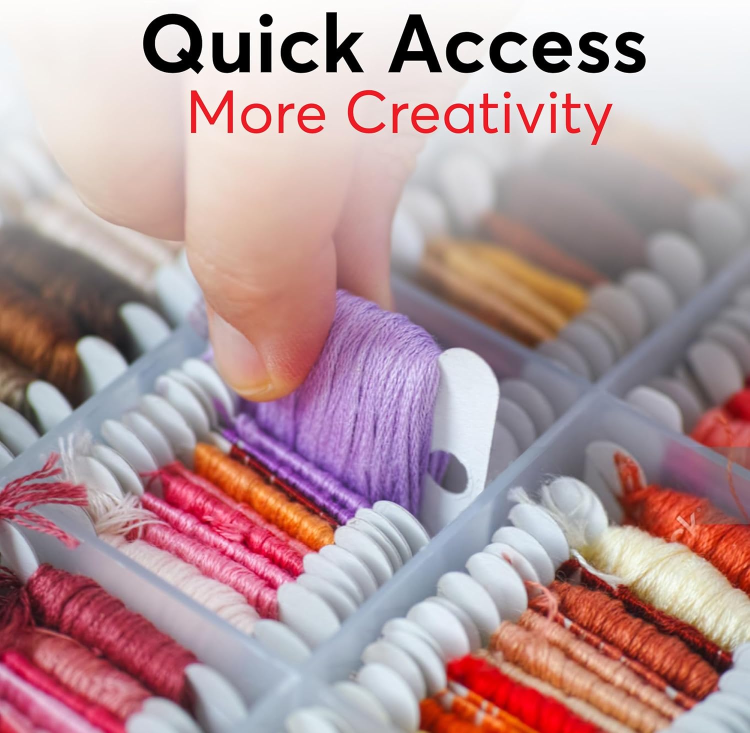 - PLASTIC FLOSS ORGANIZER – The Darice Floss and Bobbins Storage Container will help you keep embroidery floss clean and tangle free. The stackable design helps you keep all of your supplies neatly organized and ready to use.