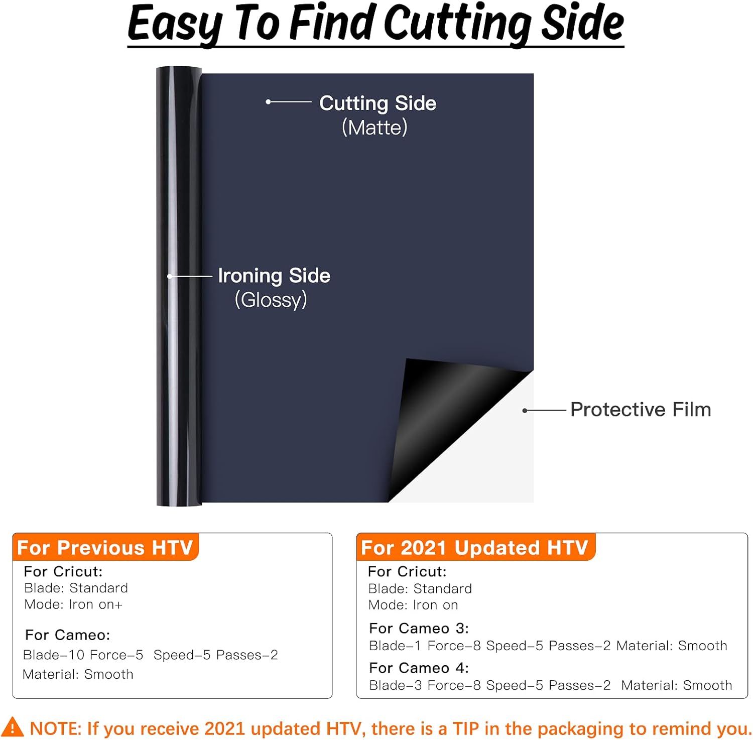 - 【12 inches x 5 Feet】 HTVRONT htv vinyl rolls are easy and convenient to cut into different size of art designs or logos or letters and perfect for 12x12" and 12x24" cutting mats. Our iron on vinyl are compatible for all cutter machines