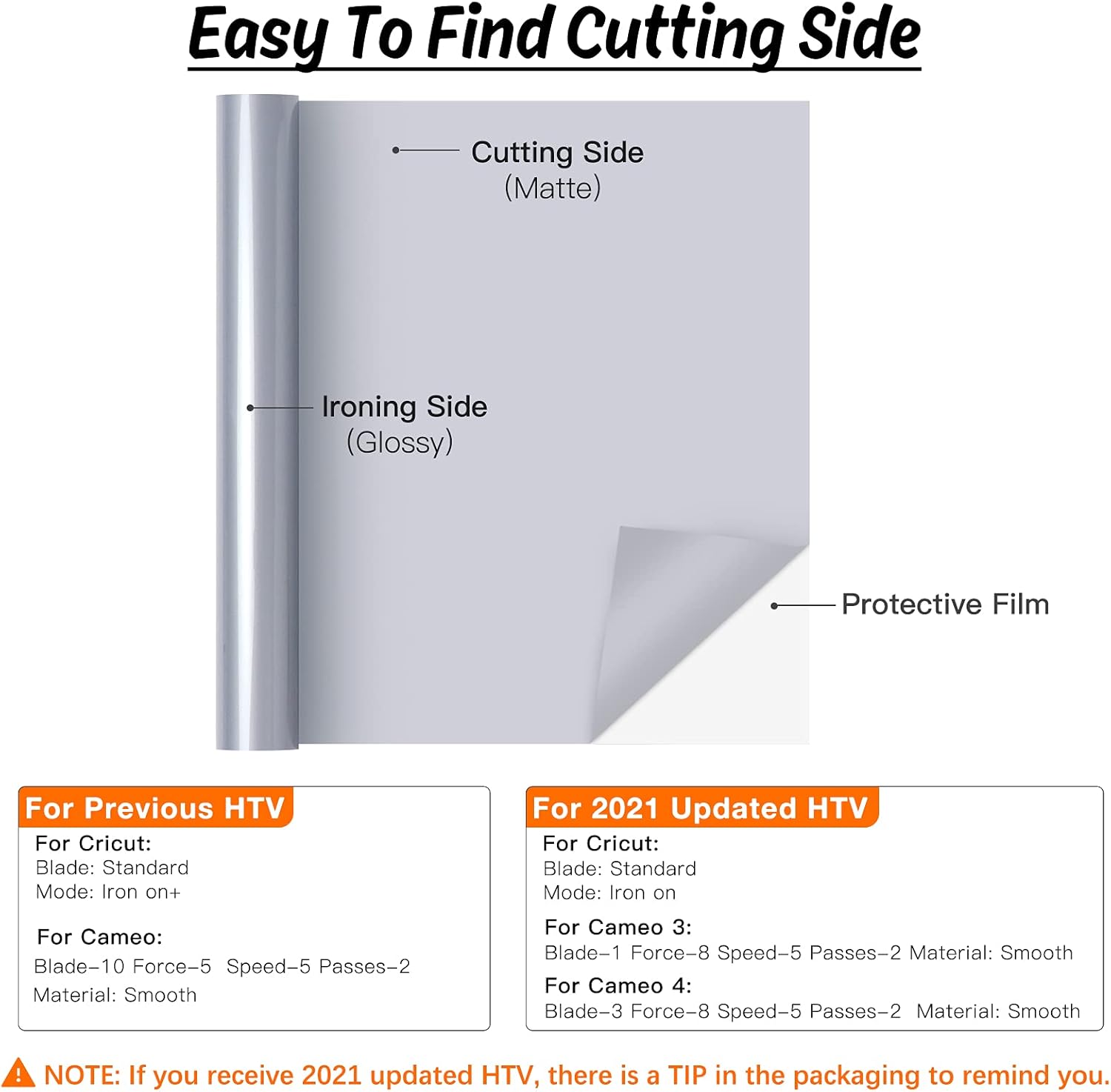 - 【12 inches x 5 Feet】 HTVRONT htv vinyl rolls are easy and convenient to cut into different size of art designs or logos or letters and perfect for 12x12" and 12x24" cutting mats. Our iron on vinyl are compatible for all cutter machines