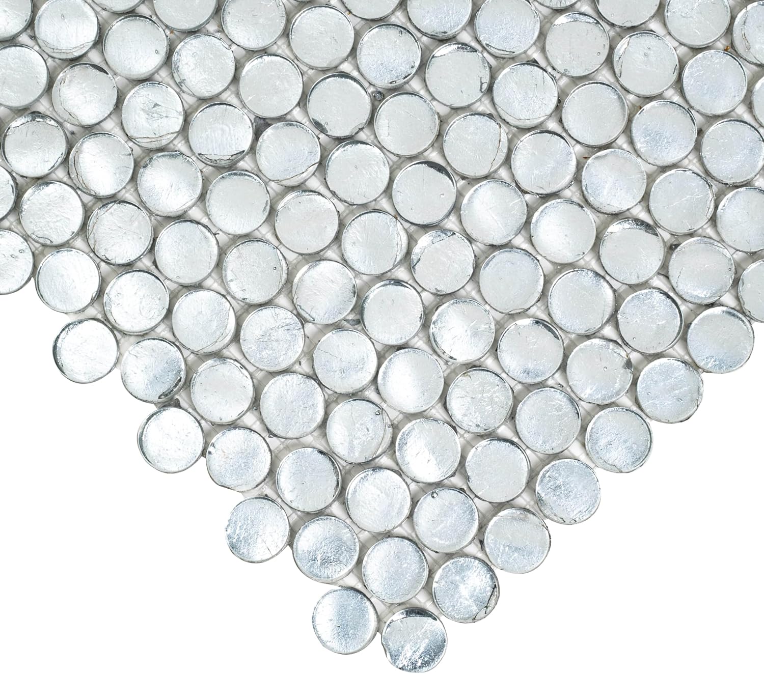 Glass Penny Round 1.03 sq ft/Piece Pack of 1,Silver Penny Round Mosaic Glass Tile โ 12.2 x 12.2 Inch - Luxurious Design for Bathroom Walls, Kitchen Backsplash, Shower Walls - Elegant Wall Dรฉcor