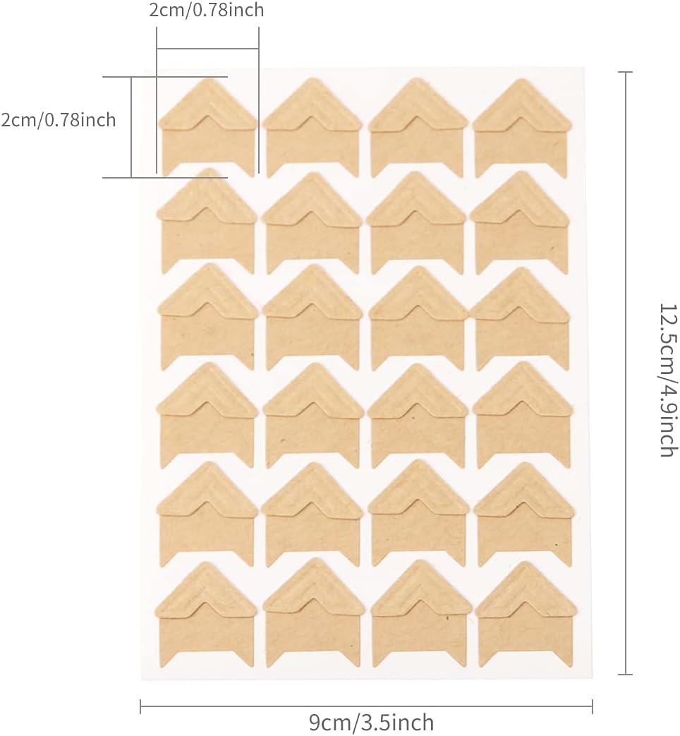 - Size Color: 360 cowhide photo corners, each sticker's size is 2 x 2 cm (0.79 x 0.79 inch), each sheet size is 12.5 x 9 cm (6.3 x 4.1 inch)