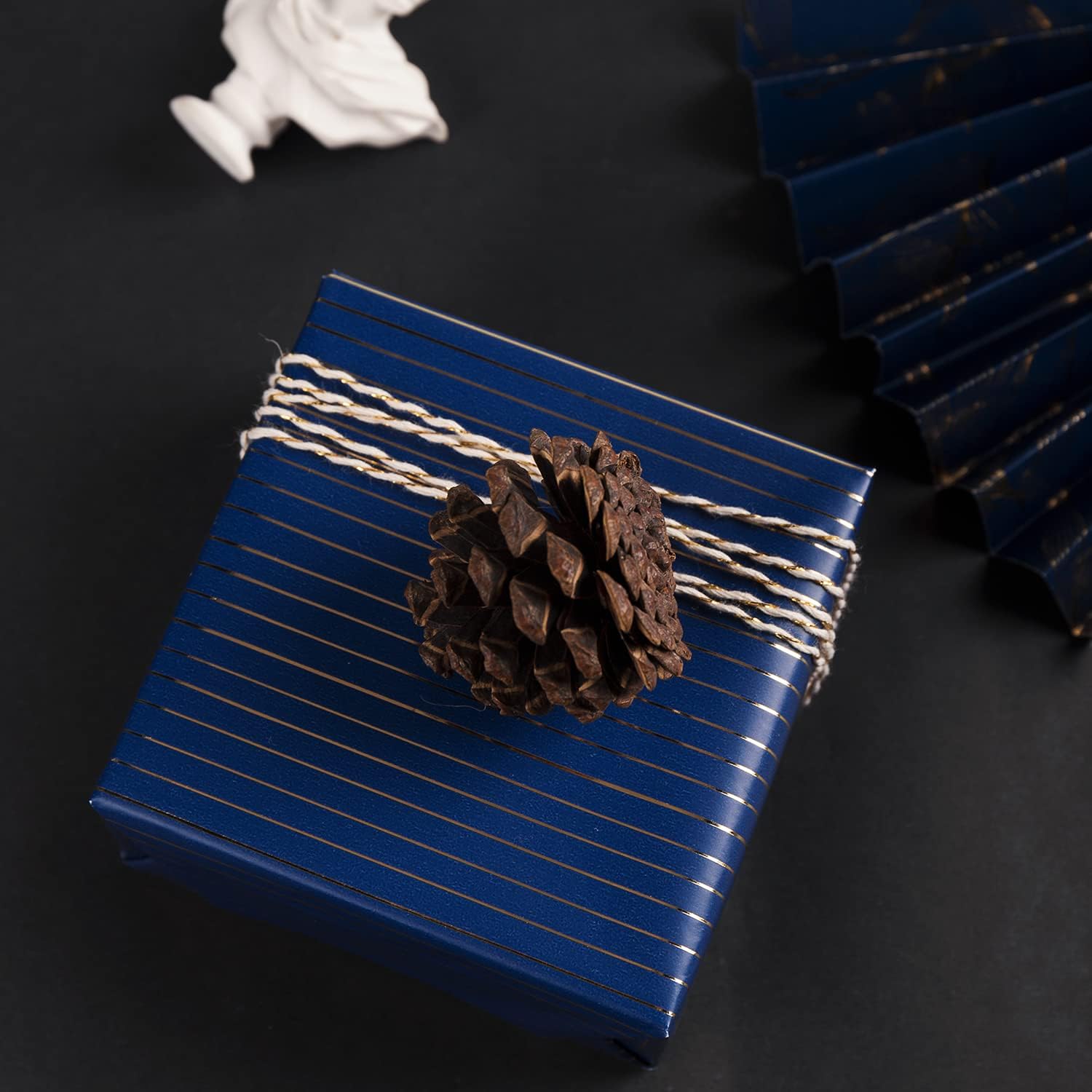 WRAPAHOLIC Navy Wrapping Paper Set - Gold and Navy Wrapping Paper Bundle with Gift Bow & Ribbon & Tag & Sticker, Perfect for Christmas, Birthday, Holiday, Father's Day, Baby Shower