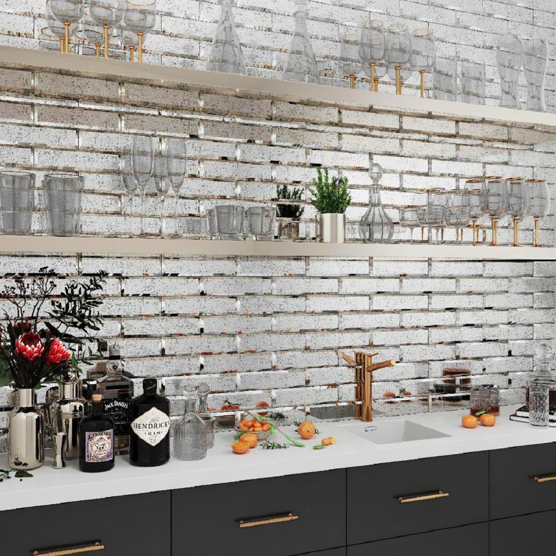 - šš²šš¶š“š» š¦ššš¹š² š®š»š± šš½š½š¹š¶š°š®šš¶š¼š»: The beveled edges and antique mirror finish create dimensional texture and light play, making these tiles ideal for statement interiors. Pair with brass, marble, matte black, or wood accents to complement modern glam, Art Deco, vintage, or transitional styles.