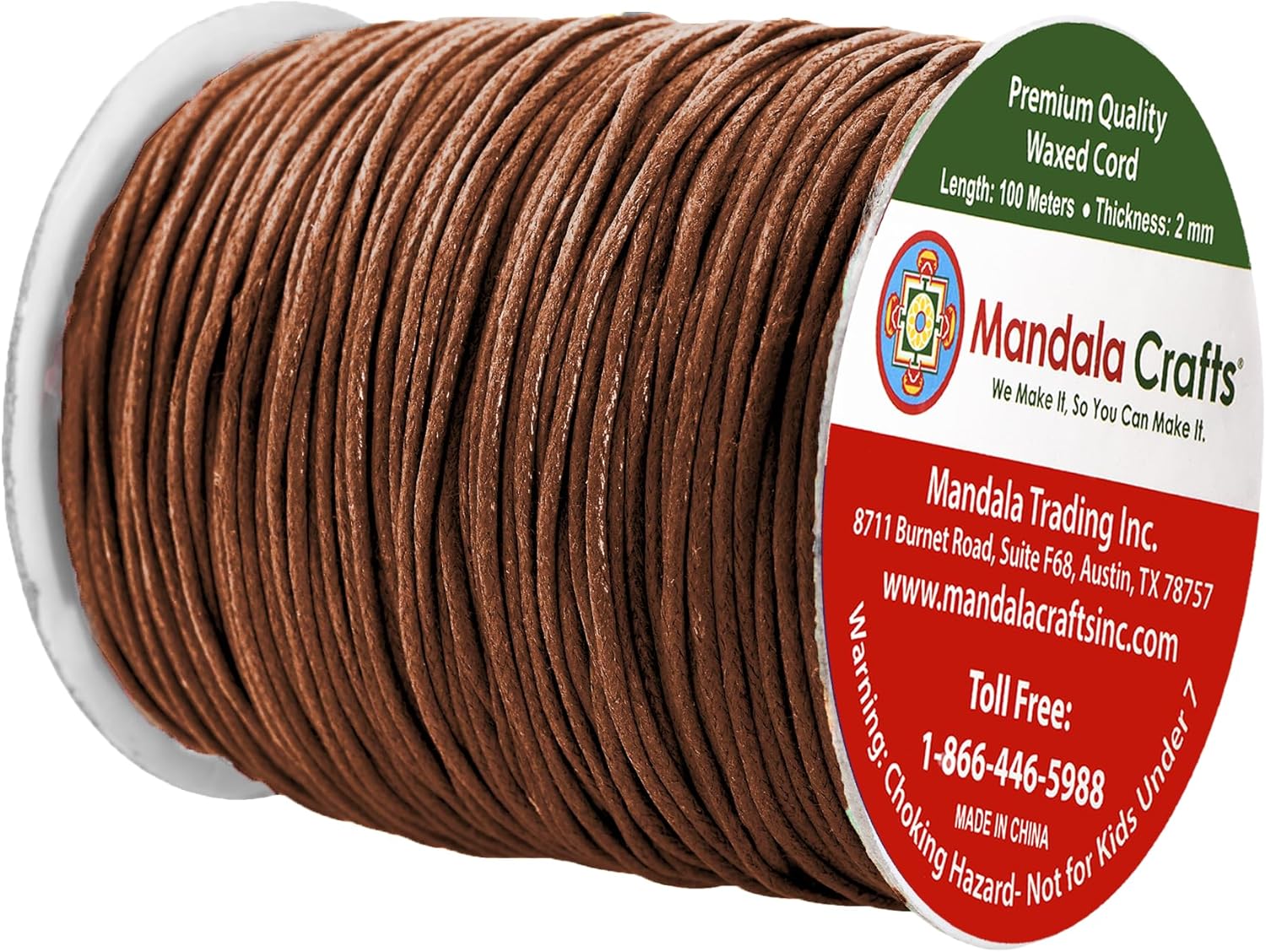 Mandala Crafts 2mm 109 Yards Brown Cotton Waxed Cord for Jewelry Making Bracelet Cord Waxed String - Beading String Thread Jewelry Cords for Necklaces String