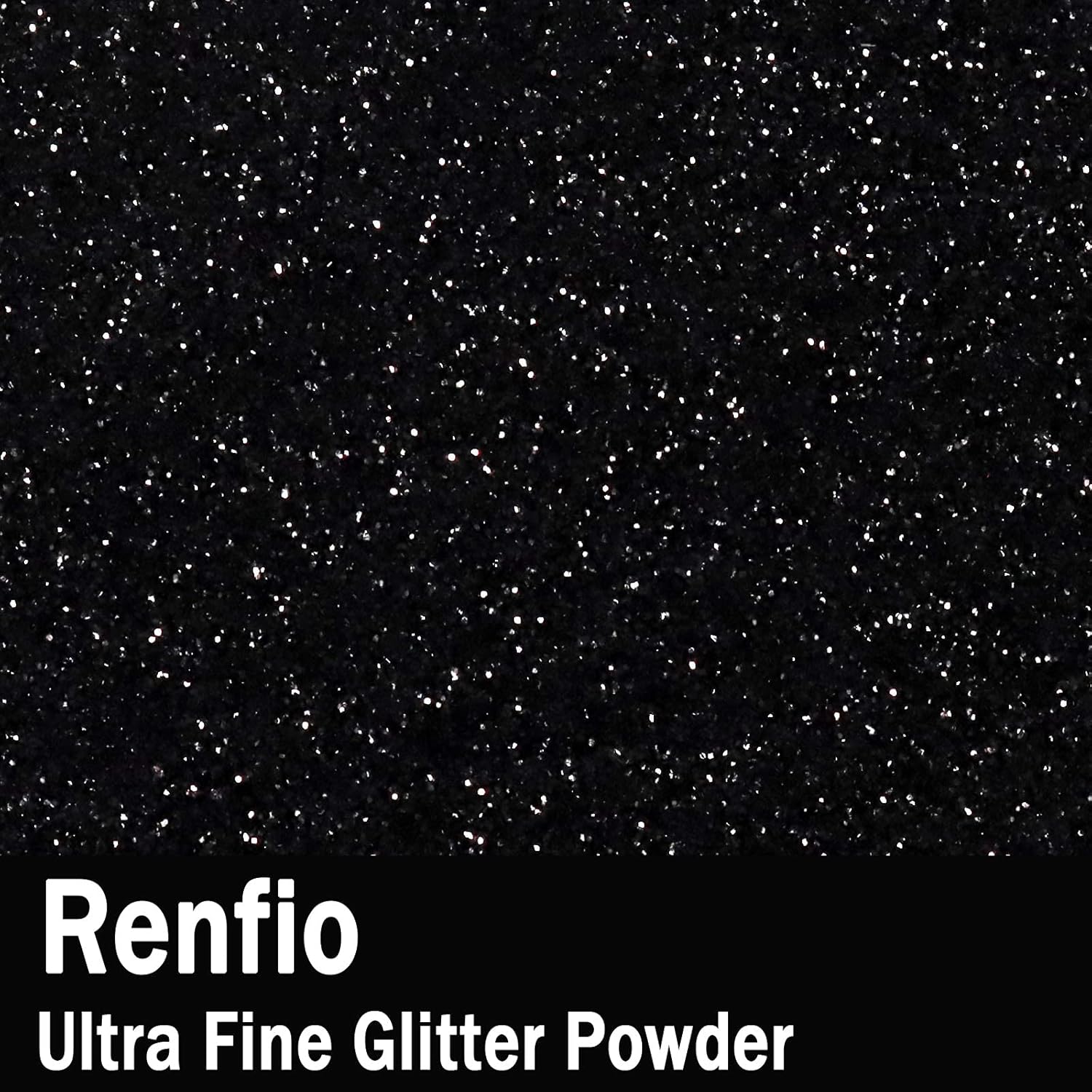 Renfio Ultra Fine Metallic Resin Glitter Powder 2.11 Oz (60g) PET Flakes Crafts Sequins 1/128" Black Glitter Epoxy Chips Flakes for Tumblers Slime Halloween Decorations - Deep Black