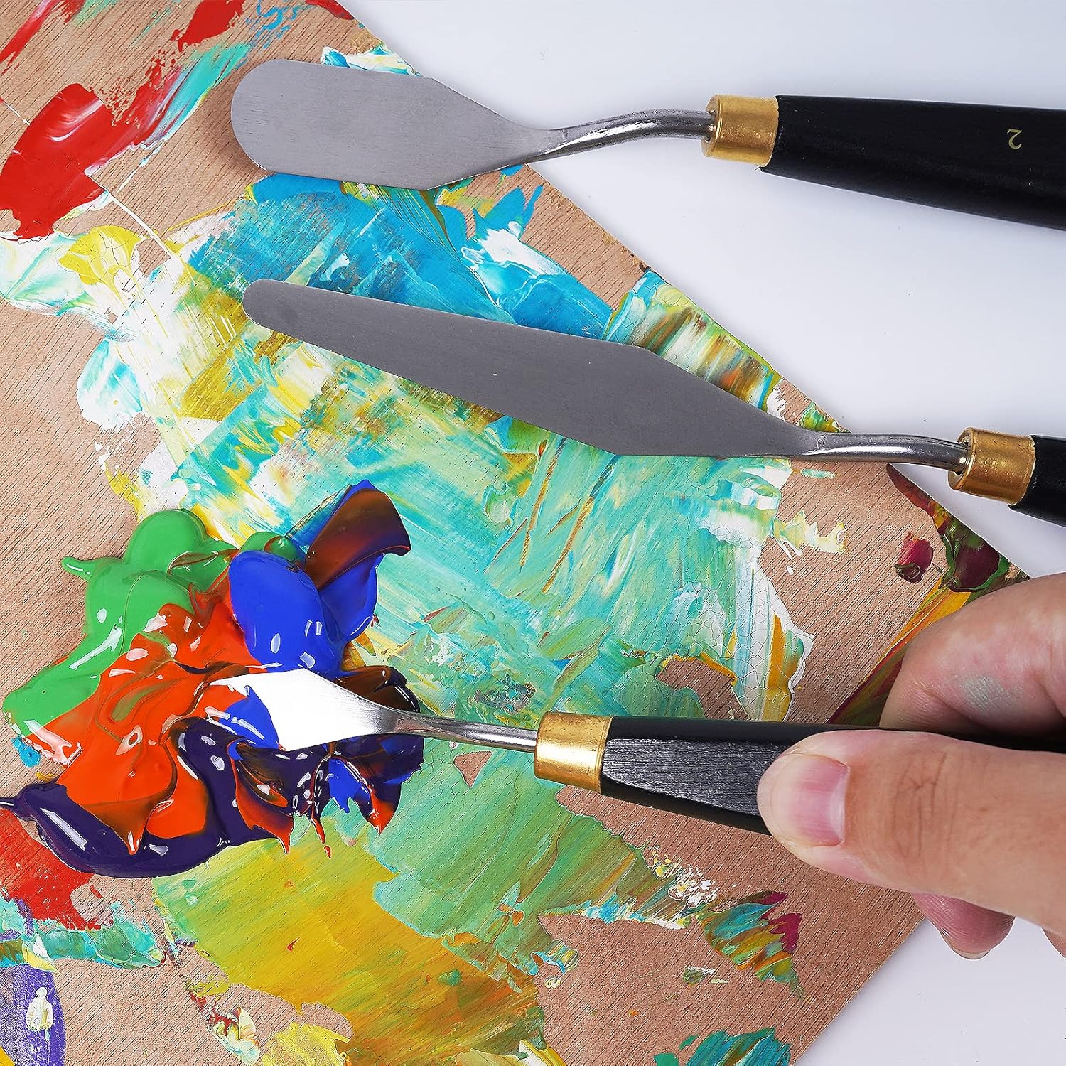 conda Palette Knife Painting Stainless Steel Spatula Palette Knife Oil Paint Metal Knives Wood Handle (Black 5 Piece)
