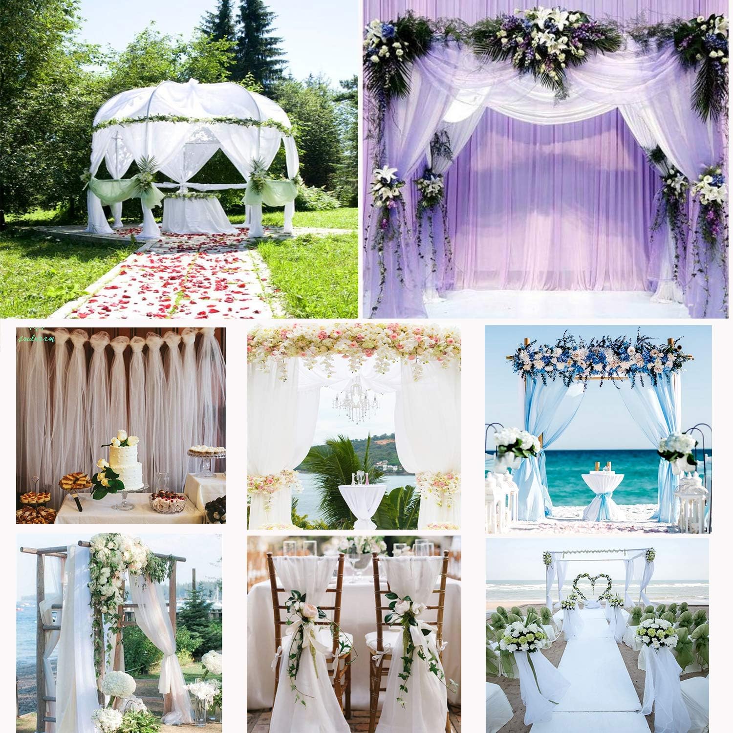 - đșăWIDE APPLICATIONăThe tulle fabric can be applied to decorate your wedding ceremony, party events, birthday, valentine's day prom, Christmas, bridal shower, holiday decors, garage, receptions, Christmas tree and Halloween party decoration, and more, help to build a shiny and glossy environment.