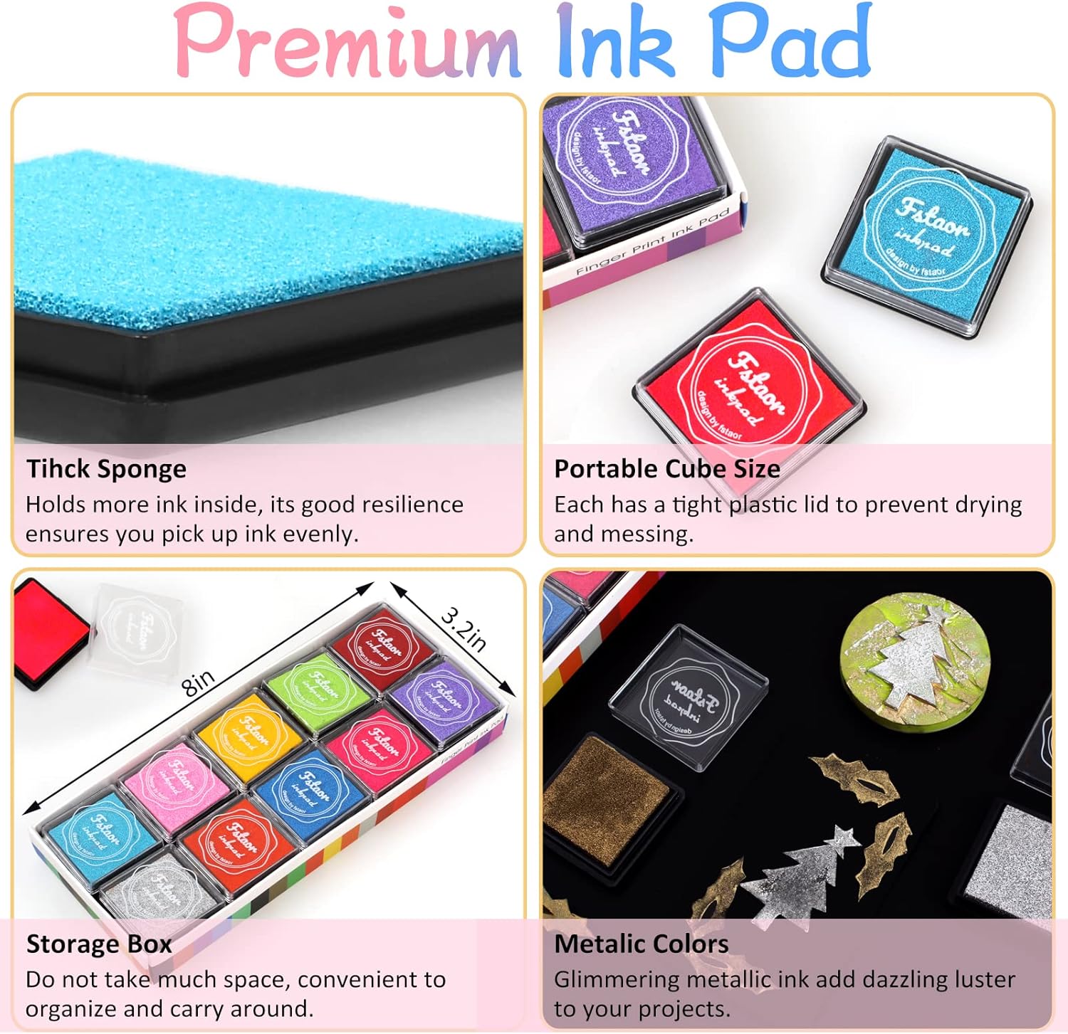 - 【Easy to store & carry】 The shell size is length 1.57 * width 1.57 * height 0.39 inch, the usable area is length 1.26 * width 1.26 inch, and the weight of each ink pad is 0.25 ounces, which is very light, easy to carry and easy to store. stamps ink pad set are put in a plastic box and each color in a individual small plastic box, which can help you to stack ink pads very neatly and save your space