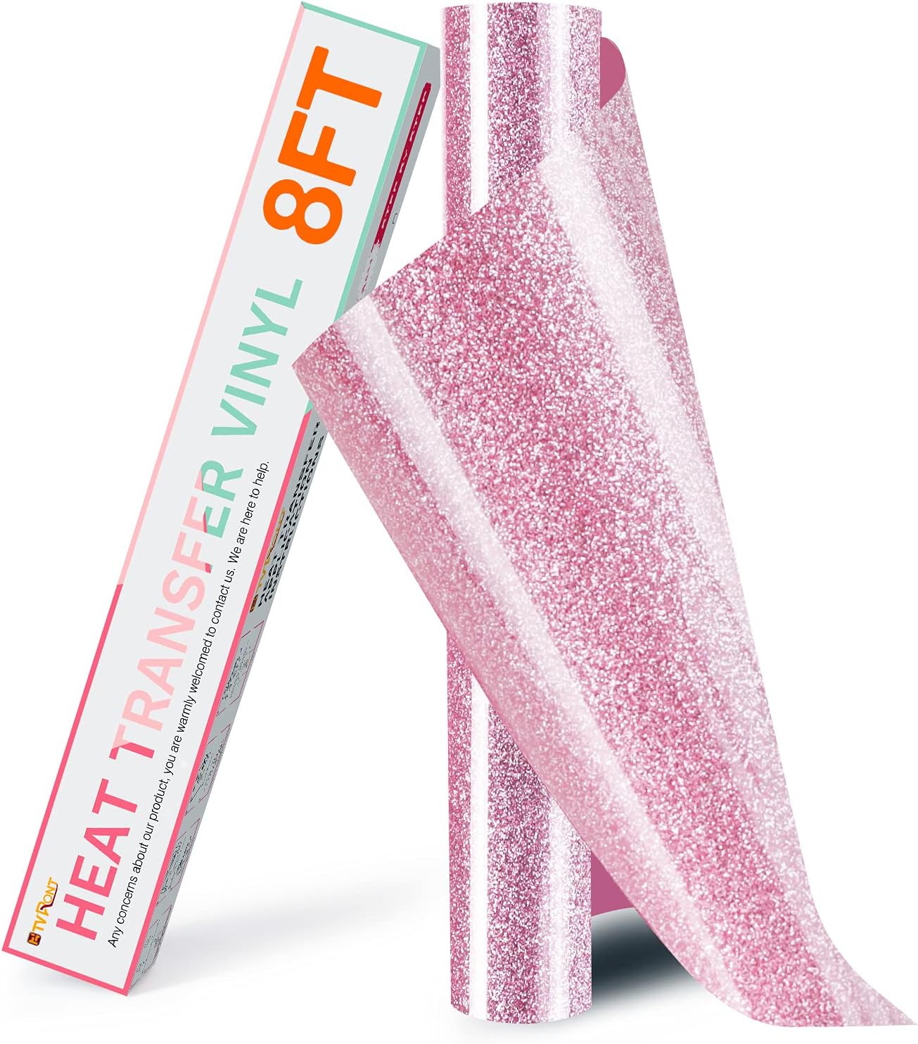 HTVRONT Pink Glitter HTV Heat Transfer Vinyl Rolls - 10" x 8ft Pink Glitter HTV Vinyl for Shirts, Glitter Iron on Vinyl for All Cutter Machine - Easy to Cut & Weed for Heat Vinyl Design (Pink)