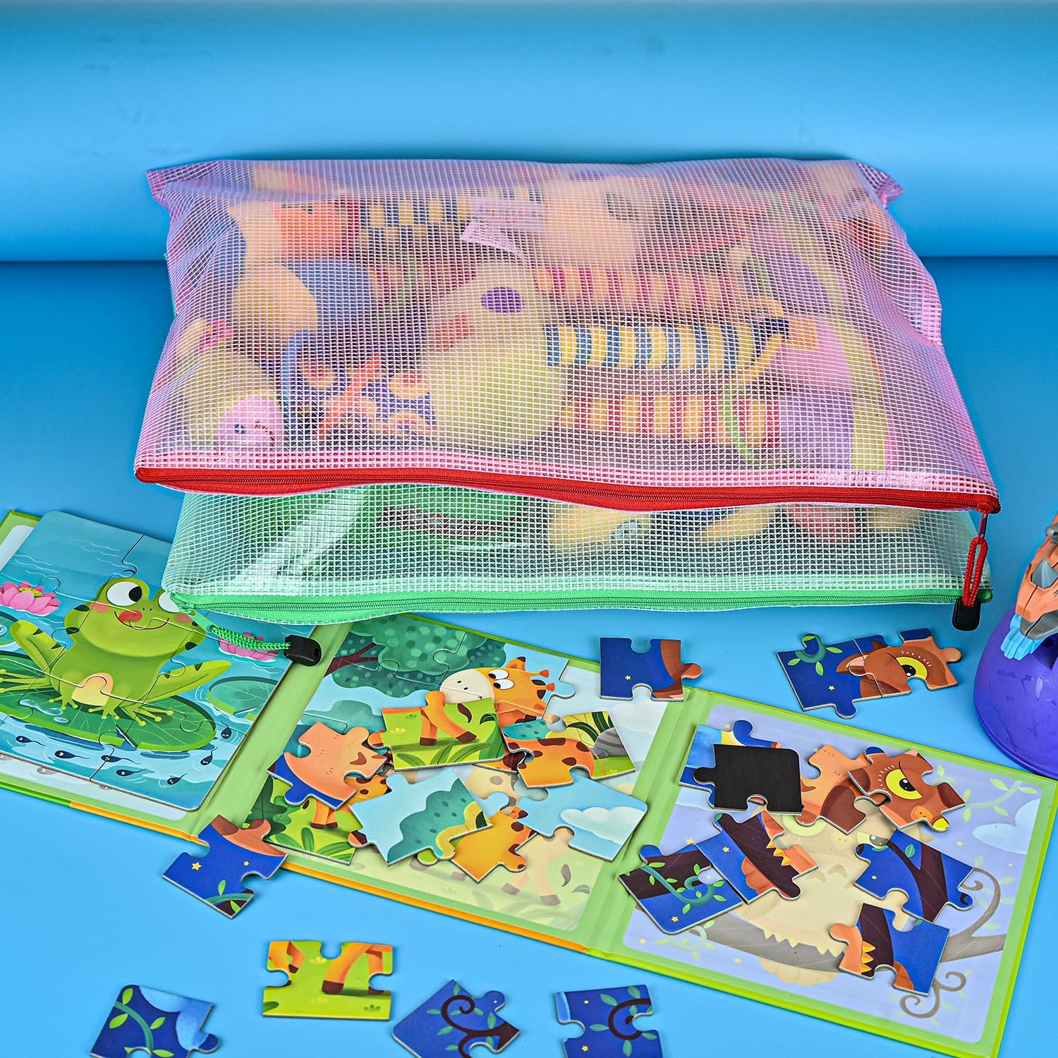 - Versatile. Store and organize board games, puzzle toys, paperwork, sewing projects , needlework, art supplies, files, stationeries, receipts. And, activities storage bags for kids, diaper organized bags for mothers, cosmetic bags for travel, or any others storage you need
