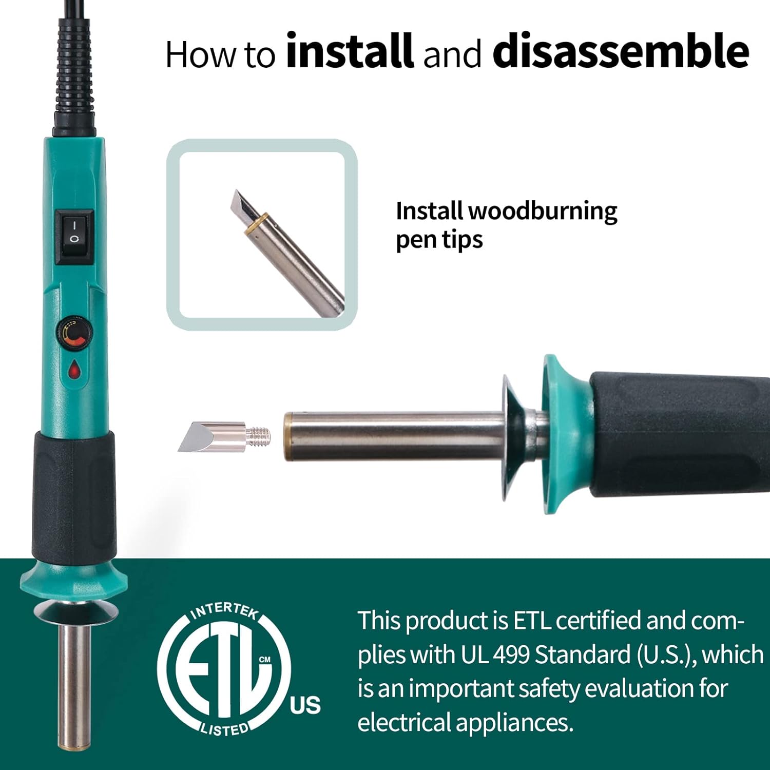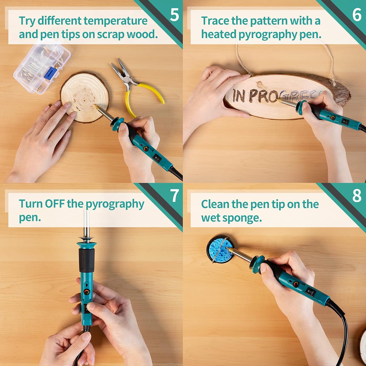 - Complete Pyrography Kit - We packed this kit with the basic items youโll need to get started in pyrography, you can enjoy the fun of wood burning with a safe, adjustable, and lightweight wood burning tool. Caution: Tighten the pyrography tip, and remove the silicone cover before use