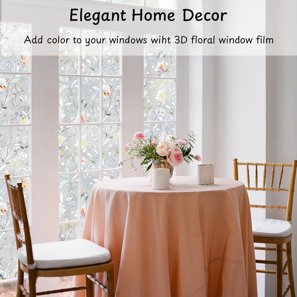 - Rainbow Tulip Pattern:Window privacy film designed of tulip pattern that, when installed, creates a strong rainbow visual effect when the sun shines, giving a unique effect to the window, as well as being an affordable alternative to heavy and expensive curtains or blinds
