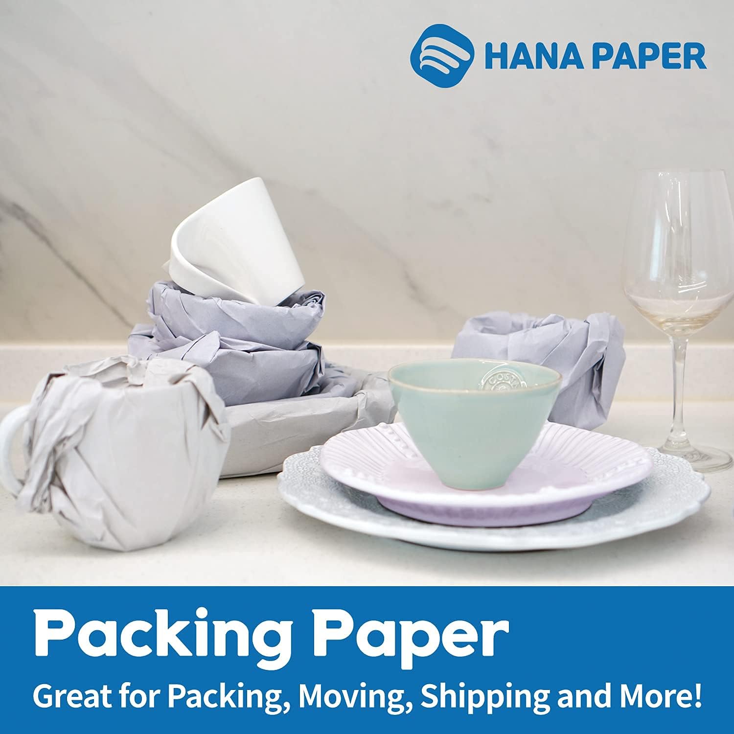 - ๐งป A GRADE Unprinted Newsprint - Lower grade of unprinted Newsprint has some not good materials, and it is easy to tears. HANA PAPER A Grade unprinted Newsprint has no other materials, and durable. It can be hold tight dishes, glasses, any other fragile items during the moving. We recommended Used to save newspapers to wrap items for moving them. These packing sheets work very well and there is no printers ink on your hands!