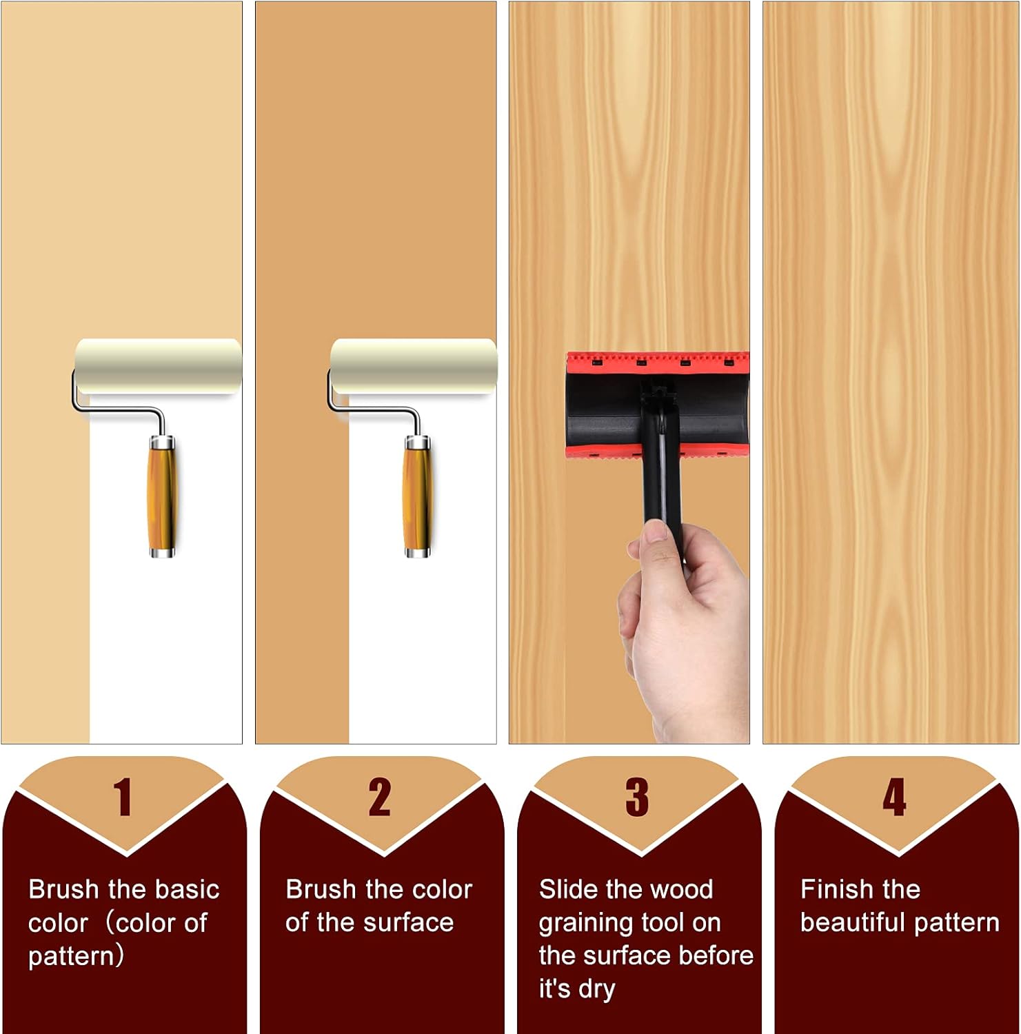 - Easy to use: for using the wood texture grain tools, brush the basic color (color of pattern) first, then brush the color of the surface after the basic color is dry; Next, sliding the wood graining tool on the surface before it's dry, you can get the beautiful pattern finally