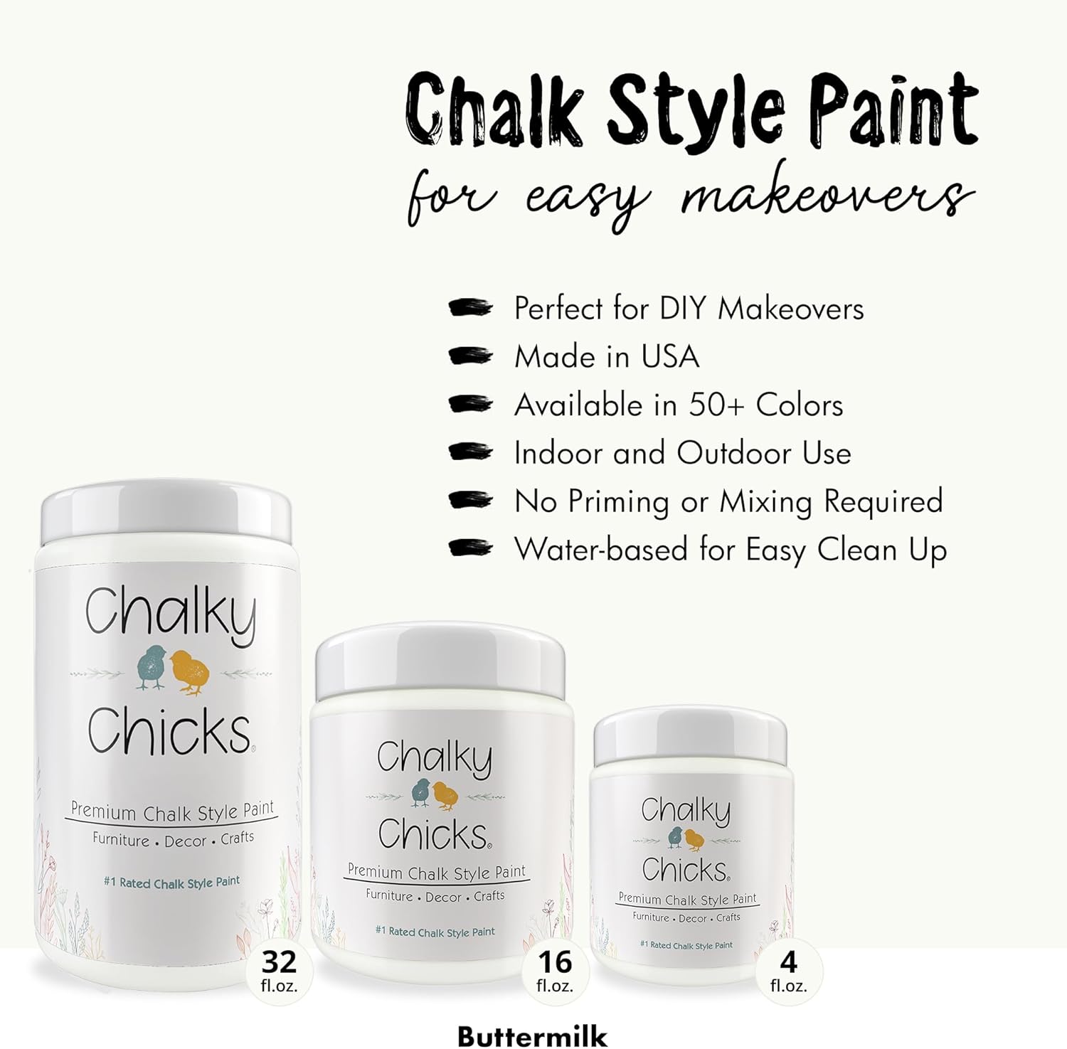 Chalky Chicks All-in-One Chalk Paint for Furniture or Cabinet - 32 Fl Oz - Matte Finish Buttermilk (White) for Metal, Wood Furniture Paint - No Sanding All-in-One for Home Decor & Crafts, USA Made