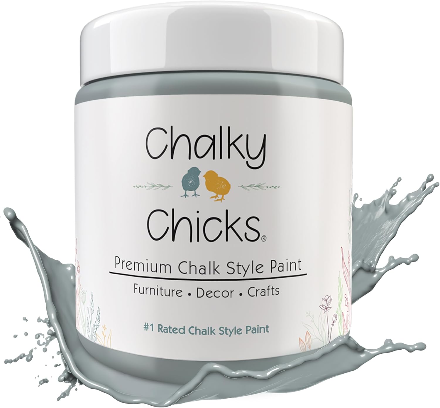 Chalky Chicks All-in-One Chalk Paint for Furniture or Cabinet - 16 Fl Oz - Matte Finish Overcast (Blue Gray) for Metal, Wood Furniture Paint - No Sanding All-in-One for Home Decor & Crafts, USA Made