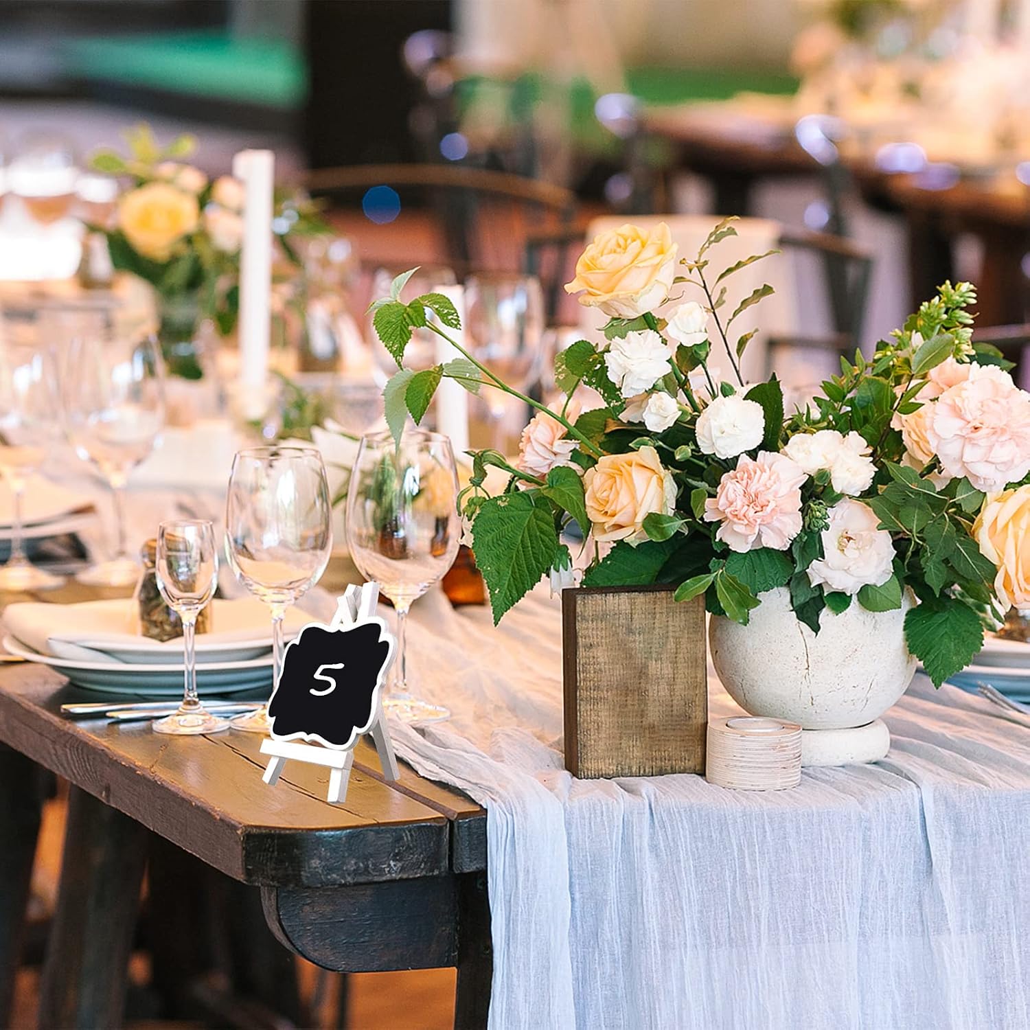 ULENDIS 10 Pack Mini Chalkboard Signs With Easel Stand, 3.9x2.9 Inch Small Wooden Labels, Reusable Blackboard Tags for Event Decoration, Wedding Signs, Cards, Tables, Party