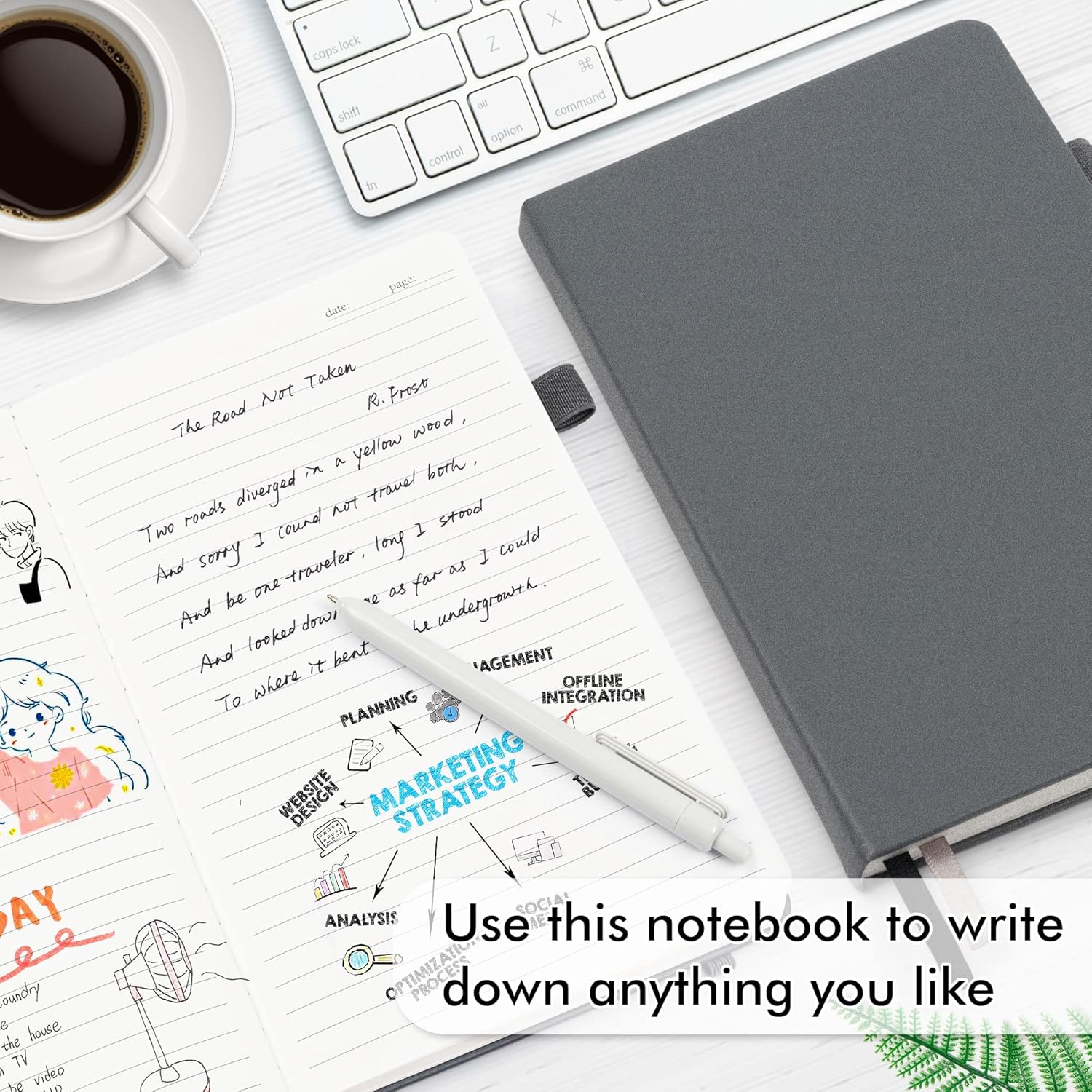 feela 5 Pack Journal Notebook Bulk for School, Hardcover Business Notebooks Classic Ruled Lined Journals with Pen Holder for Work Note Taking, with 5 Black Pens, 120 GSM, 5.1”x8.3”, A5, Gray