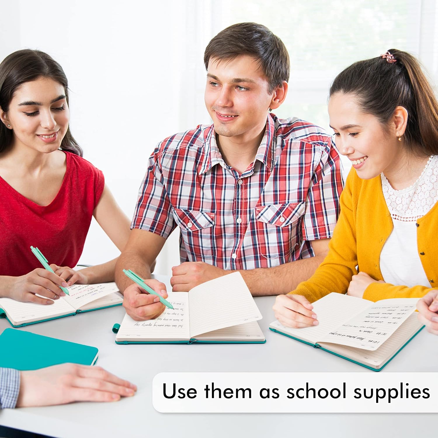 - Feela 5 Pack Classic Ruled Notebooks contains 5 classic emerald ruled sturdy cover notebooks and 5 Black Retractable Pens. Each of the notebooks measures 8.3” x 5.1”, which is perfect to carry and easily held by young girls and boys. These black cute pens are customized to be placed in the pen holder, which is pretty convenient.