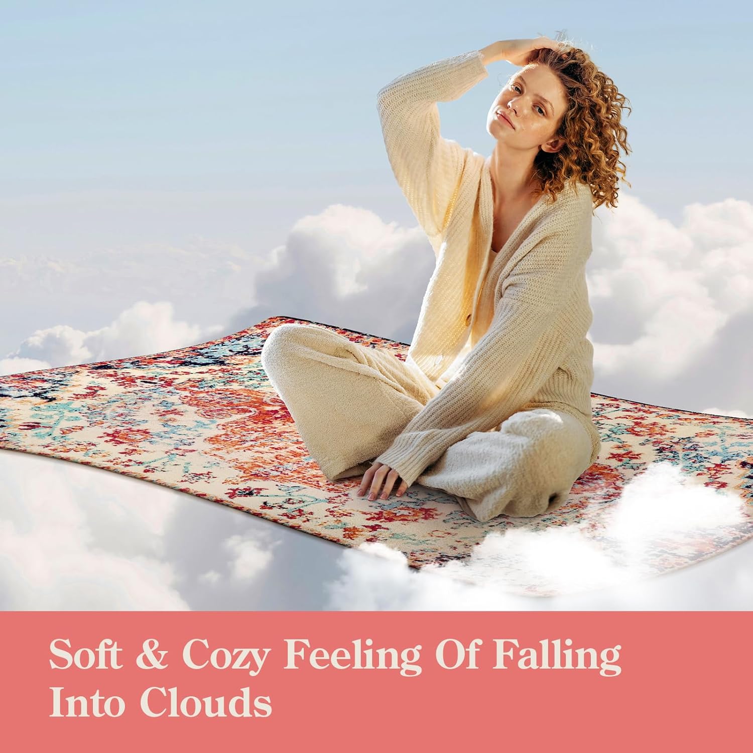 - [Exclusive Design Accent Rug] - The perfect way to brings a refreshing boost of color to your home, this bohemian floral medallion rug is a must-have for your home. It features a cream, orange, and navy blue design patterns with purposeful distressing to add vintage appeal to your space.
