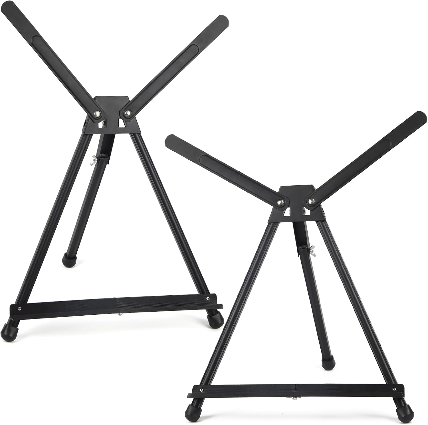 Falling in Art Aluminum 15" to 21" Tabletop Easel Display, Black Tripod with Rubber Feet, Holds Canvas, Paintings, Books, Photos, Signs (Pack of 2)