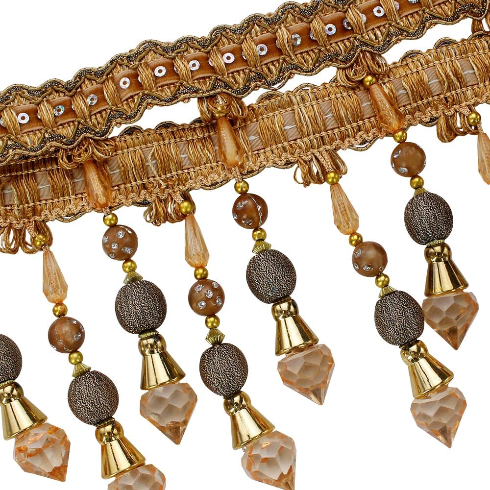 3yards Beading Fringe Trimming Long Beads Tassel Curtain Trim Ribbon Trim for Cover Edge Decorative (Orange)