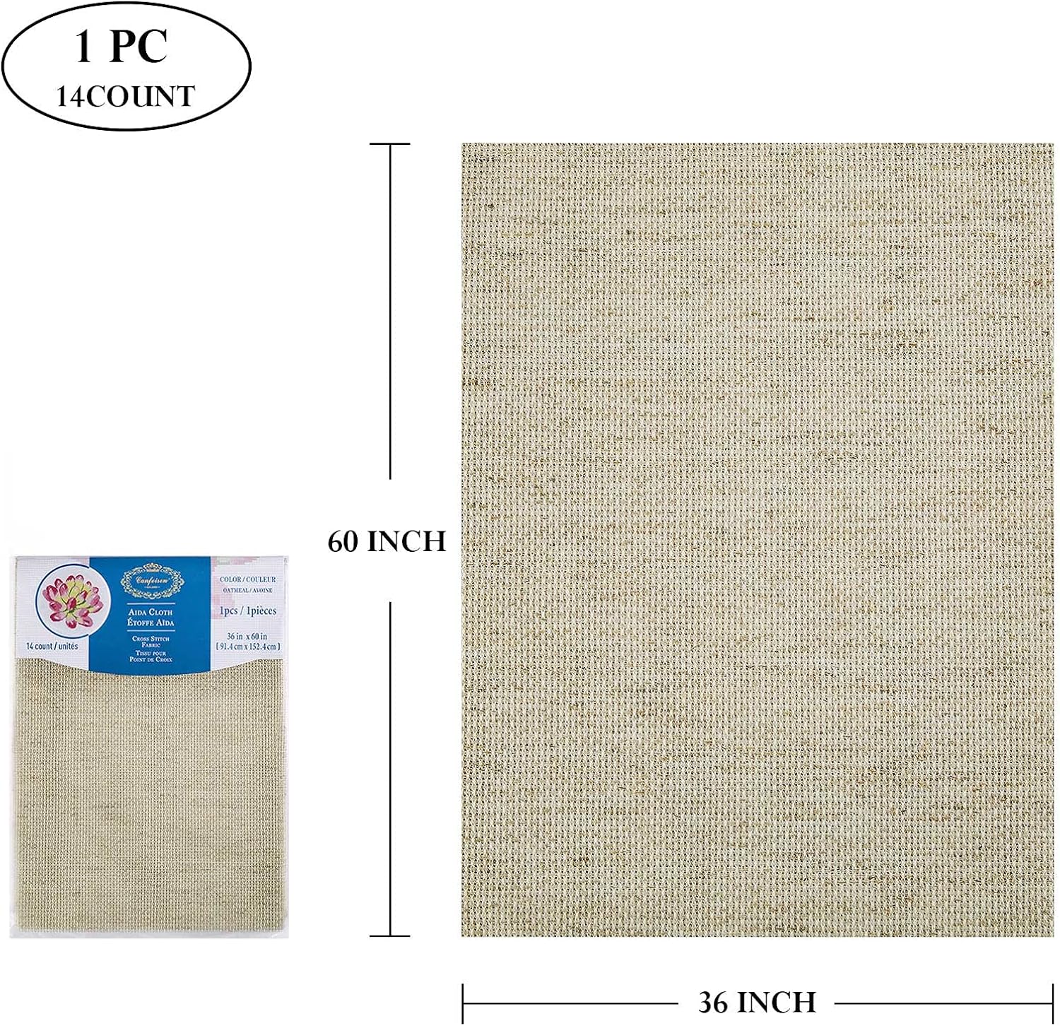 Aida Cloth Big Size 14 Count, Natural Oatmeal Cross Stitch Fabric, 60 inch by 36 inch (60 inch by 1 Yard)