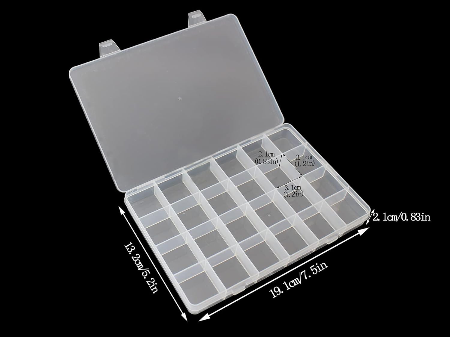 - About our box : we have 24 grids which couldn't be removed . It is very sturdy and it is good for you to keep your beads, letters and buttons and other small jewelry crafts and sewing supplies . This jewelry storage container case is the perfect solution for keeping random household items separate, organized and easy to find .