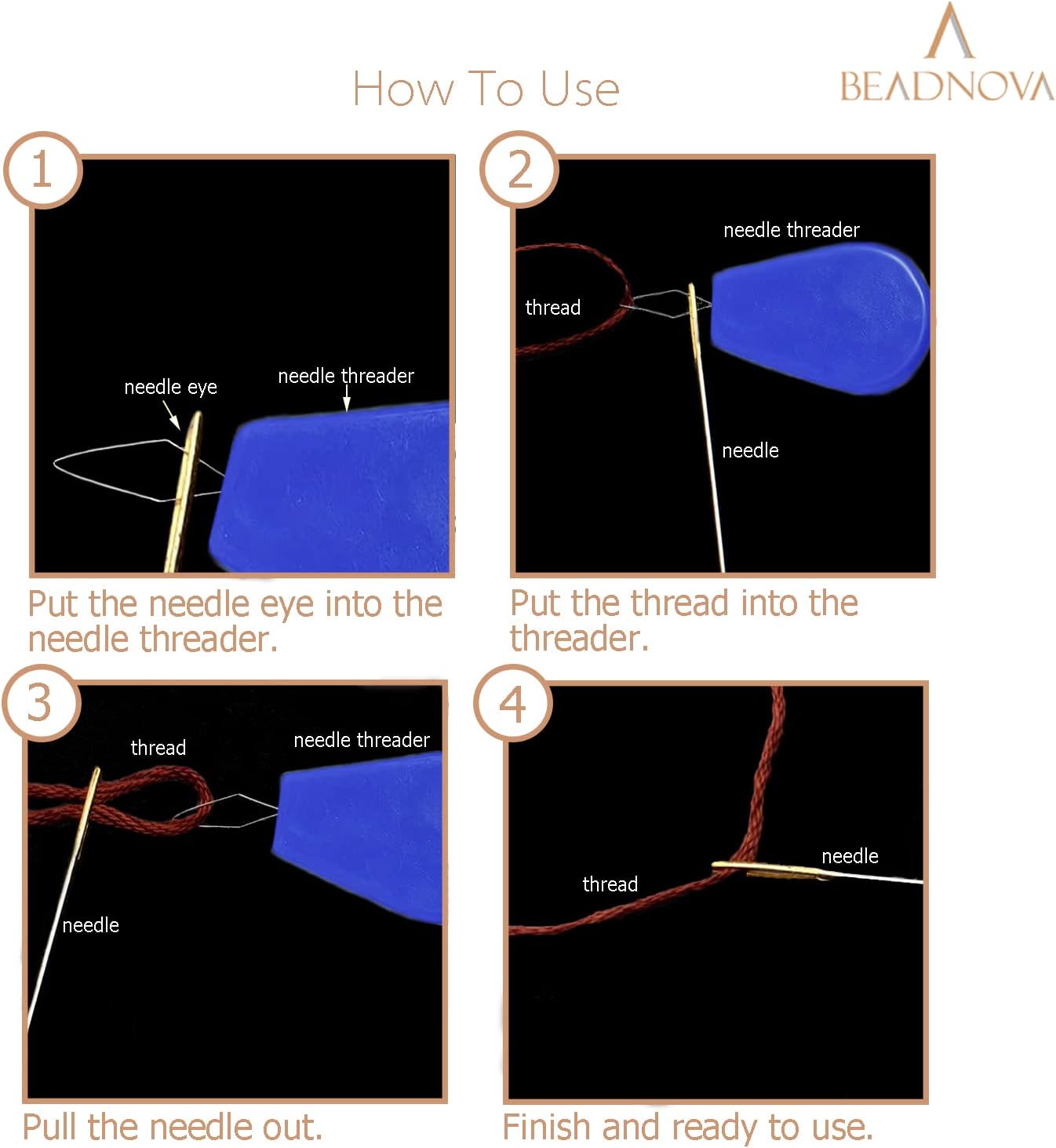 - EASY TO USE: Insert the wire loop on the needle threader through the eye of the needle. Insert the thread tail through the wire loop at least a few inches in length. Fold the tail over and hold both lengths of thread together. Pull the wire loop out from the eye of the needle and ensure the thread tails comes through with it.