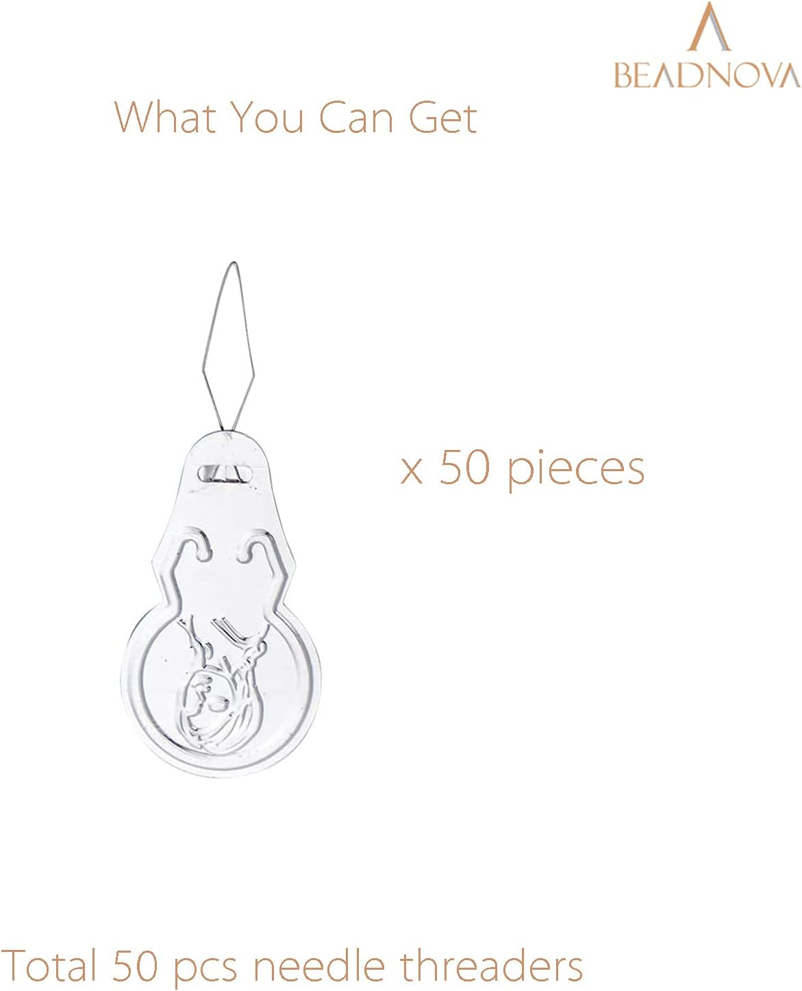 BEADNOVA Embroidery Needle Threader Tool 50pcs Aluminum Sewing Machine Needle Threader for Hand Sewing Cross Stitch Craft Knitting Quilting (50pcs)