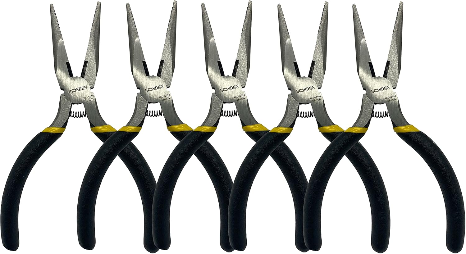 BOOSDEN 5" Small Needle Nose Pliers, Mini Needle Nose Pliers, Micro Needle Nose Pliers-5 Pack