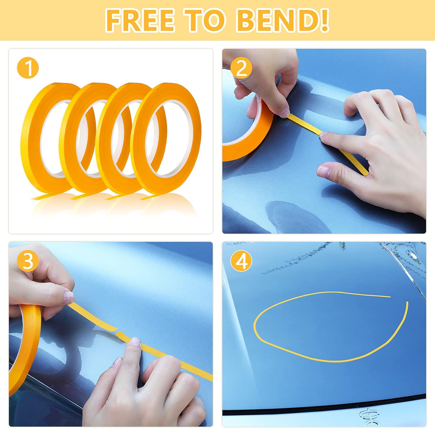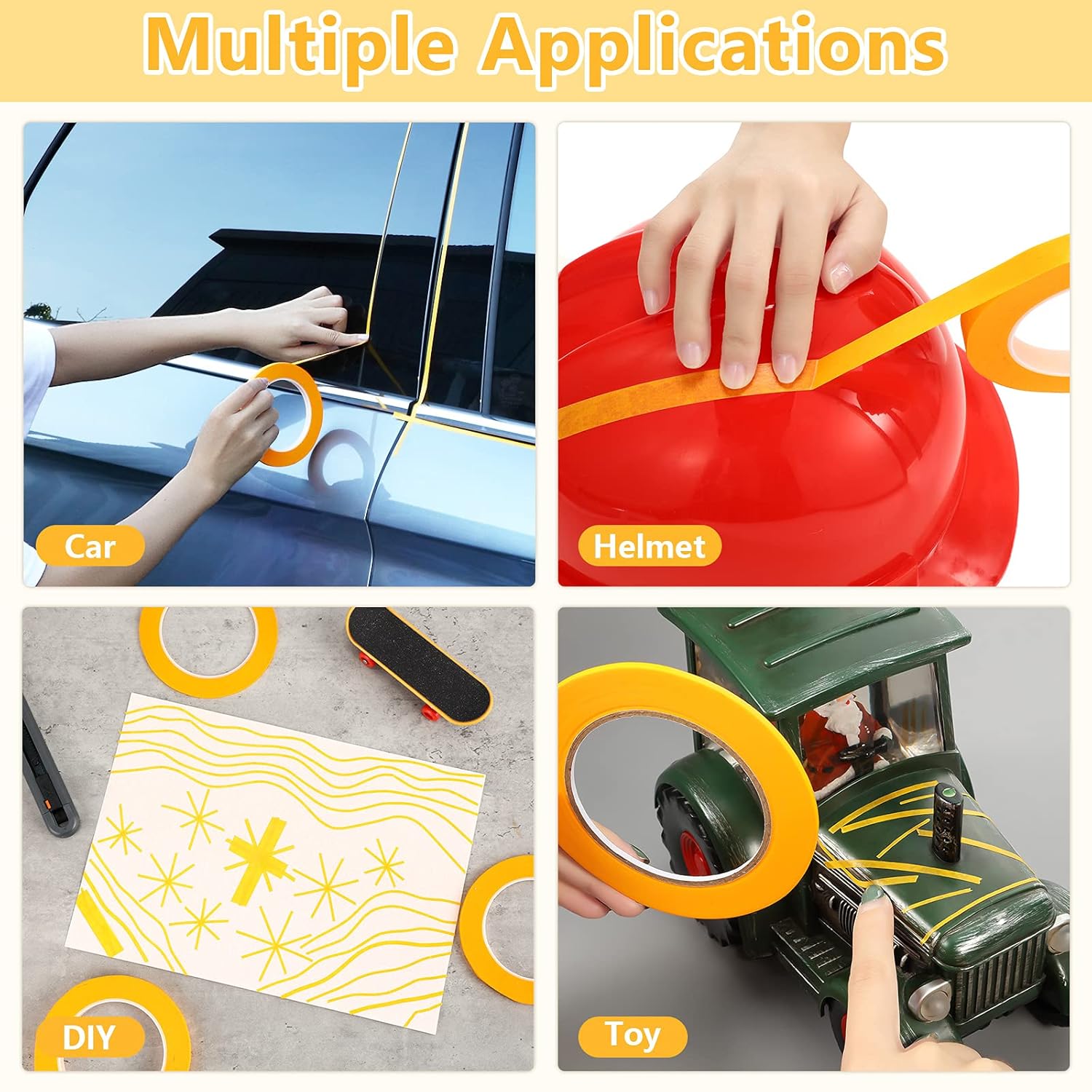 Epakh 4 Rolls Pinstripe Tape, Masking Tape in 1/16, 1/8, 1/4 and 1/2 Inch Wide, for Painters Automotive DIY Car Auto Paint Art(Yellow,52 yd)