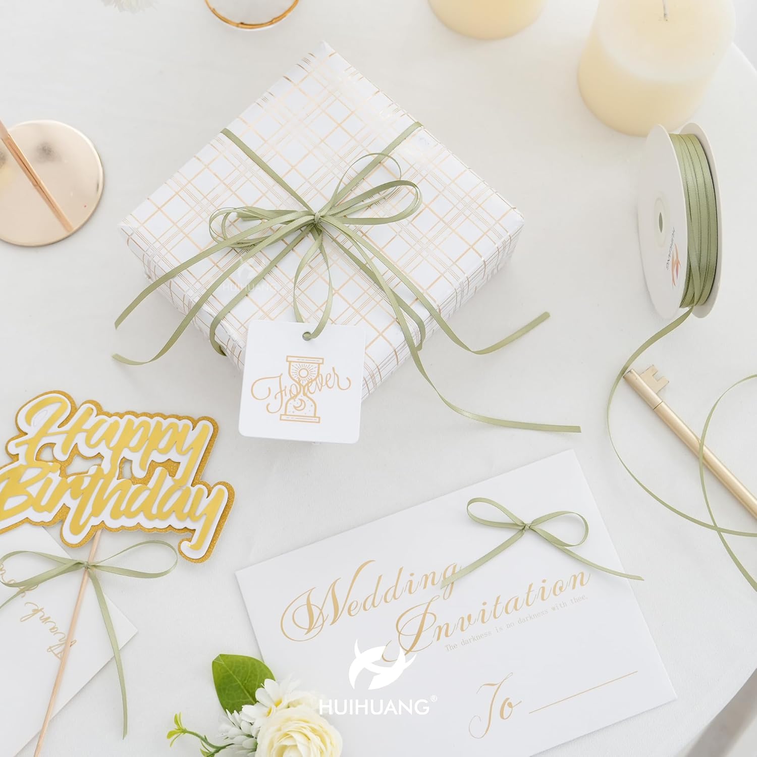 HUIHUANG Solid Color Satin Ribbon 1/8 inch x 100 Yards Roll Ribbon Double Faced for Crafts Gift Wrapping DIY Bows Invitation Card (Spring Green/Sage)