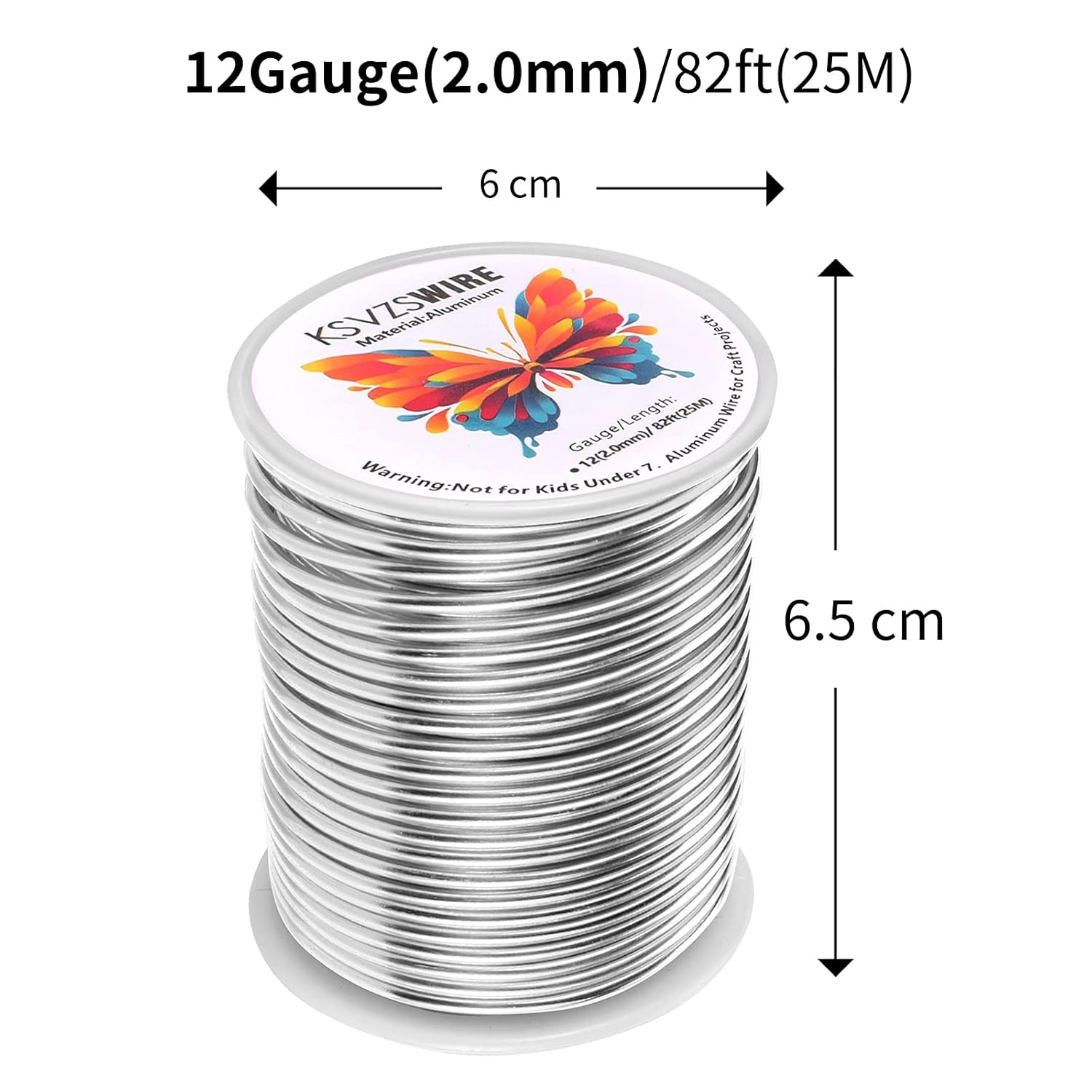 12 Gauge(2.0mm) Aluminum Wire 82 Feet(25M) KSVZS Bendable Metal Wire for Crafts, Sculpting, Armature, Jewelry Making【3-in-1】+18Gauge(1.0mm) 32.8Ft(10M)+1 Pliers(Silver)