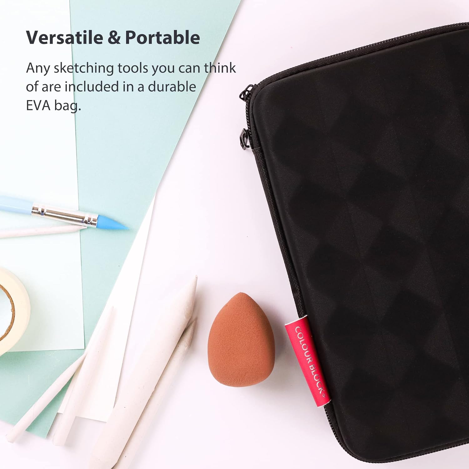 COLOUR BLOCK 30pcs Sketching Tool Set with Soft Pastels Drawing Art Blenders, Blending Stumps, Tortillions, Sandpaper, Sketch Pencil Extender, Rubber Pens