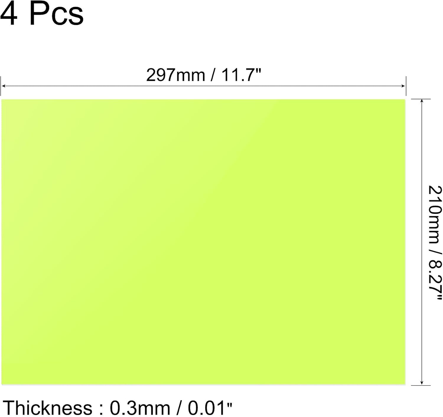 uxcell 4Pcs A4 Gel Light Lighting Filter Overlay Transparent Color Correction Plastic Vinyl PVC Sheets Photography Television Fluorescent Green,0.3mm