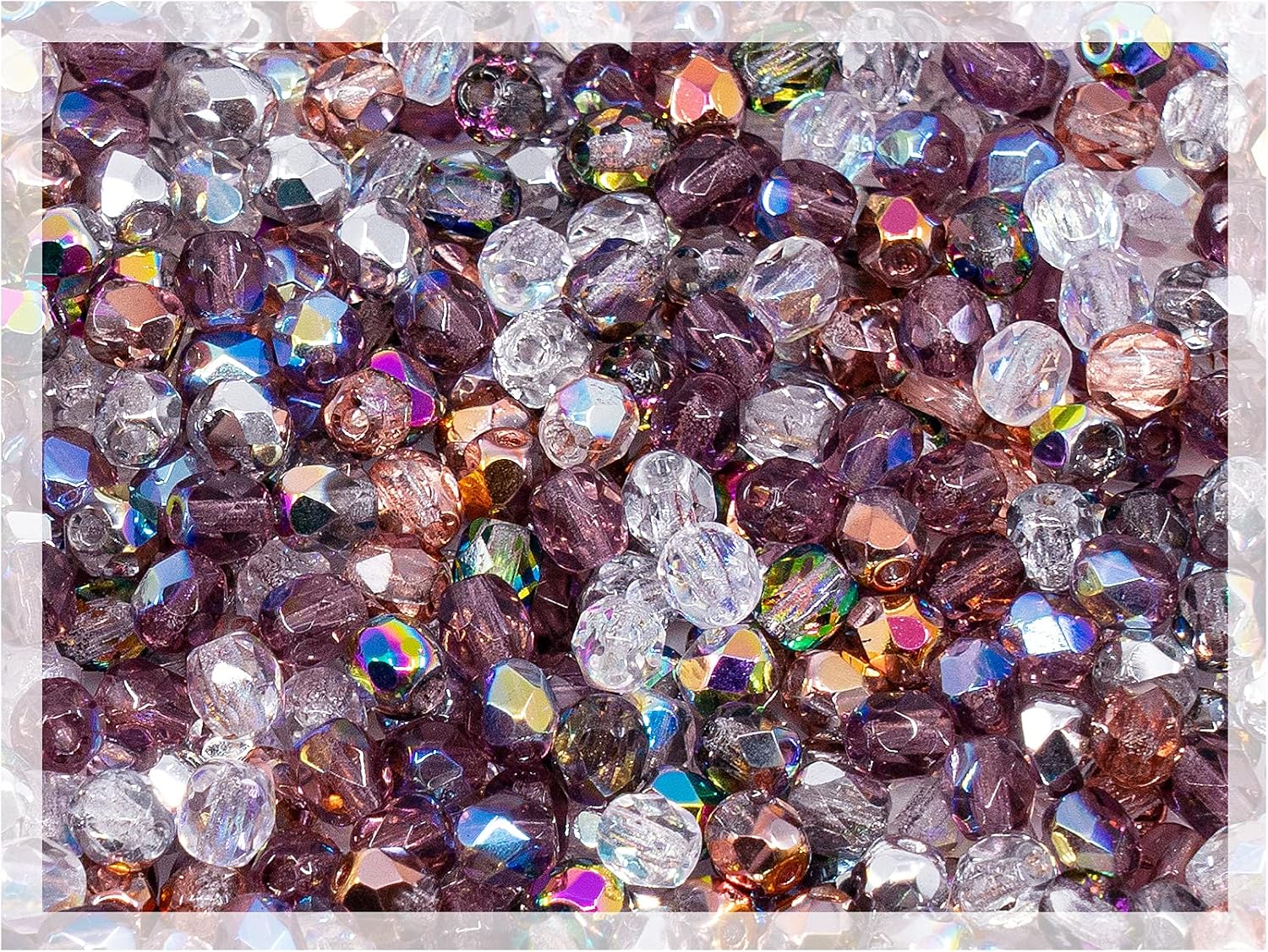 1.8 oz (50 g, cca 600pcs) Mix of Faceted Fire Polished Pressed Czech Glass Beads, Sparkling Shiny Mix