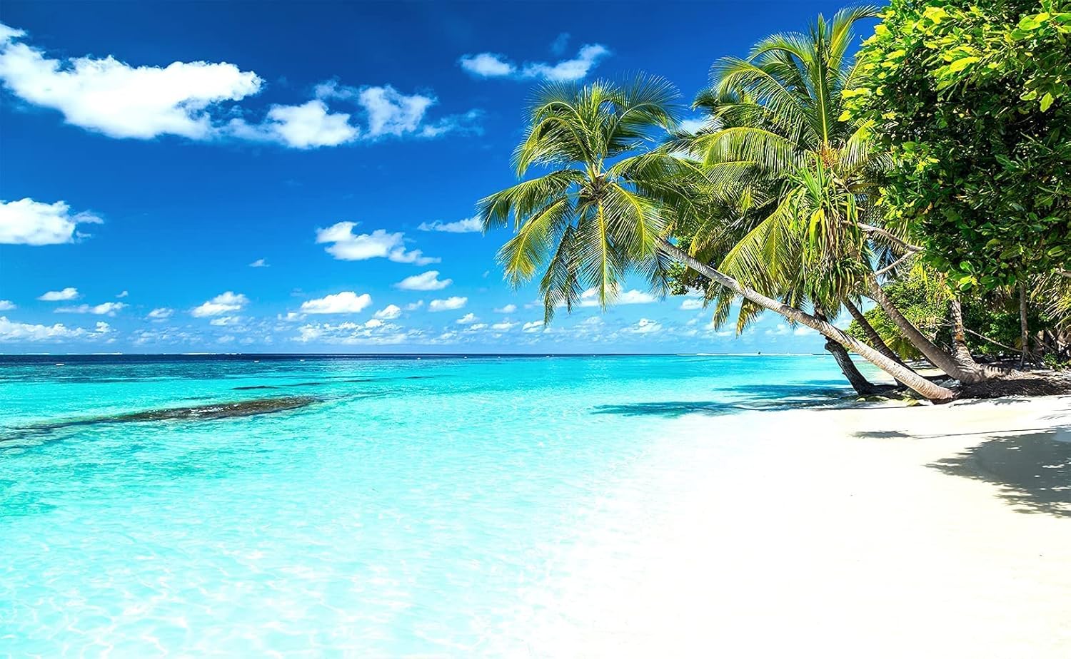 Palm Tree Wall Mural Tropic Paradise Beach Seascape Murals Wallpaper for Walls Bedroom Living Room Bedroom TV Background Kids Room Decoration(Not Peel and Stick)