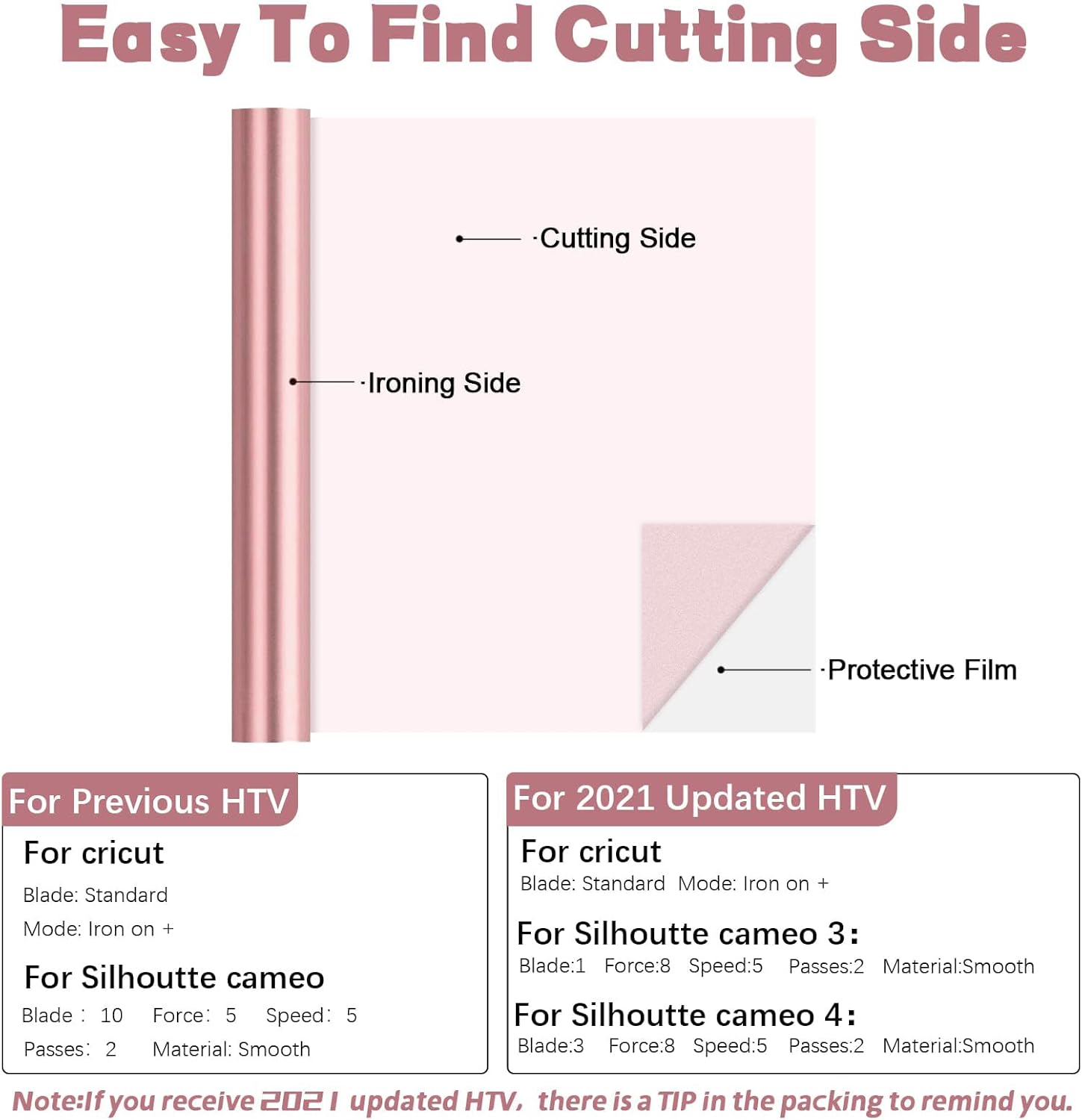 - 【GREAT STICKINESS】 Our htv vinyl rolls is pretty sticky, they adhere to the fabric seamlessly and has held up well in the wash without fading, peeling and crack.Your designs of our rose gold heat transfer vinyl will keep the same color and can't come off even after repeated washing cycles