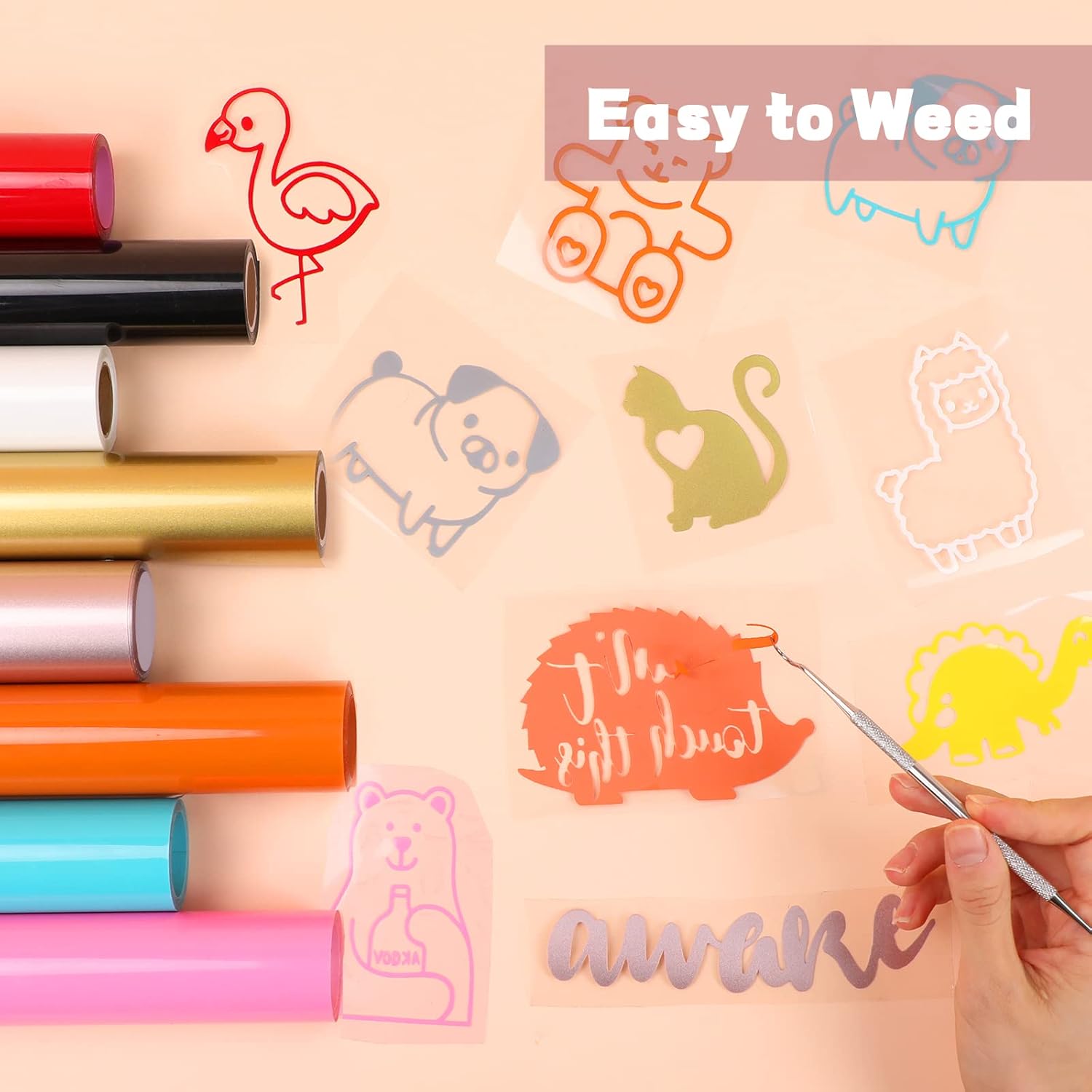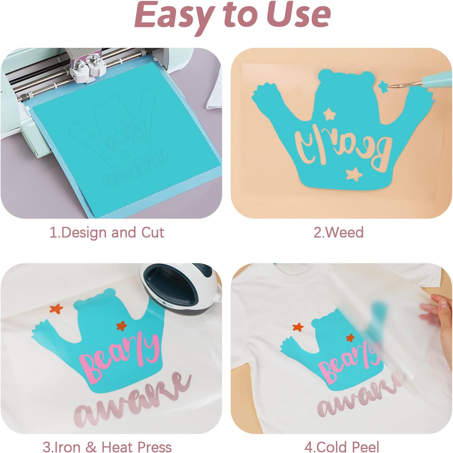 - 【EASY TO CUT & WEED & TRANSFER】 Our premium quality heat transfer vinyl will save your time which you may waste on each image or letter, because you can cut and weed easily through the designs just right.The iron on vinyl is sensitive to temperature and pressure, which can be heat transferred on any t-shirt easily