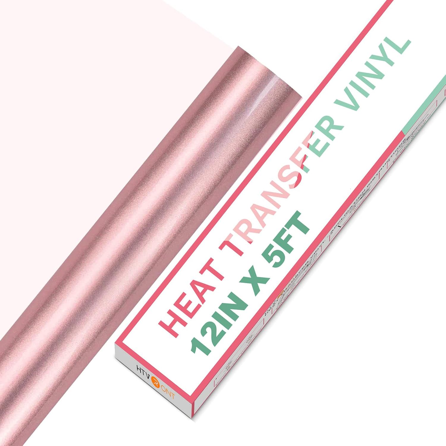 HTVRONT HTV Vinyl Rolls Heat Transfer Vinyl - 12" x 5ft Rose Gold HTV Vinyl for Shirts, Iron on Vinyl for All Cutter Machine - Easy to Cut & Weed for Heat Vinyl Design (Rose Gold)