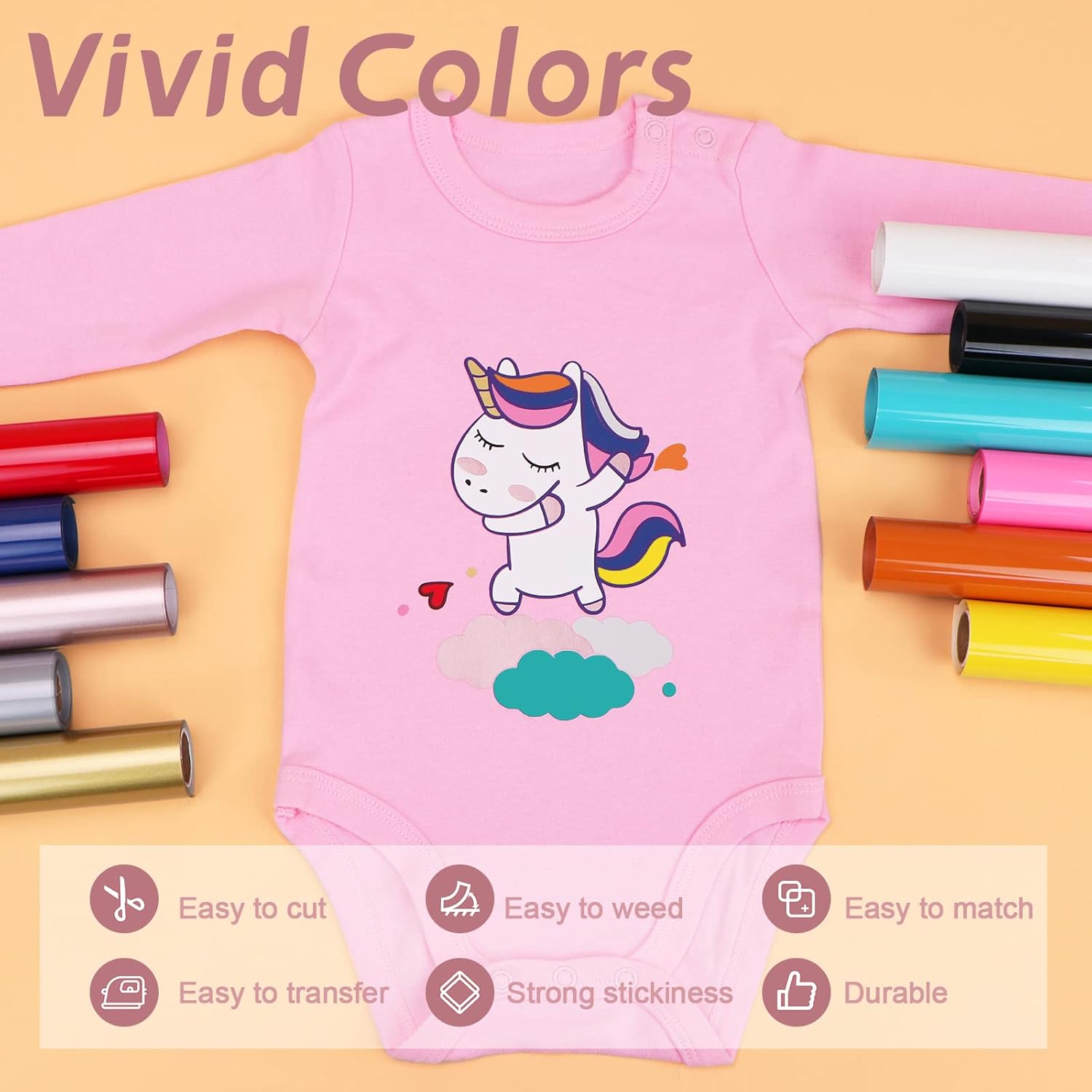 - 【12 inches x 5 Feet】 HTVRONT htv vinyl rolls are easy and convenient to cut into different size of art designs or logos or letters and perfect for 12x12" and 12x24" cutting mats. Our iron on vinyl are compatible for all cutter machines