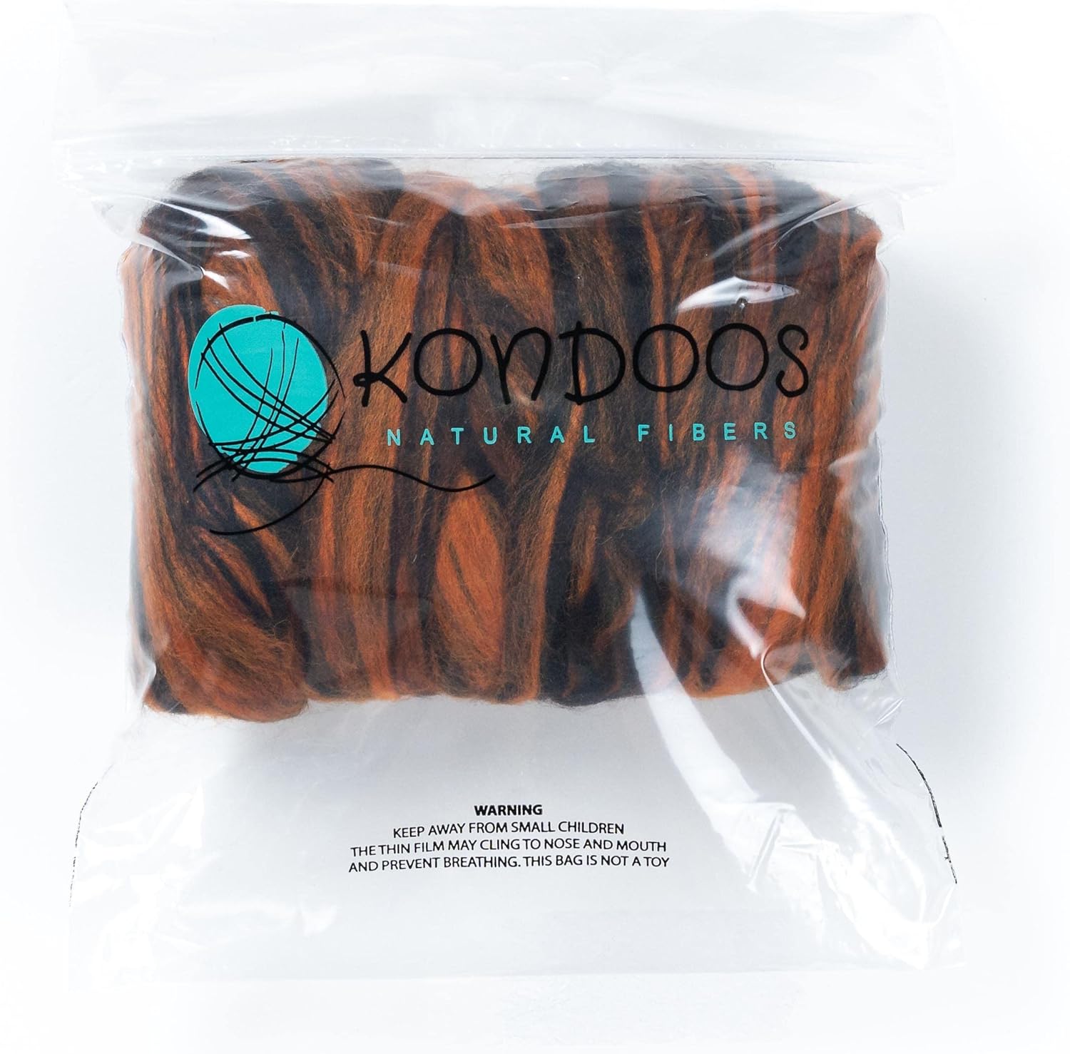 Colored Natural Wool roving, 8 OZ. Best Wool for Needle Felting, Wet Felting, handcrafts and Spinning. (Halloween Zebra)