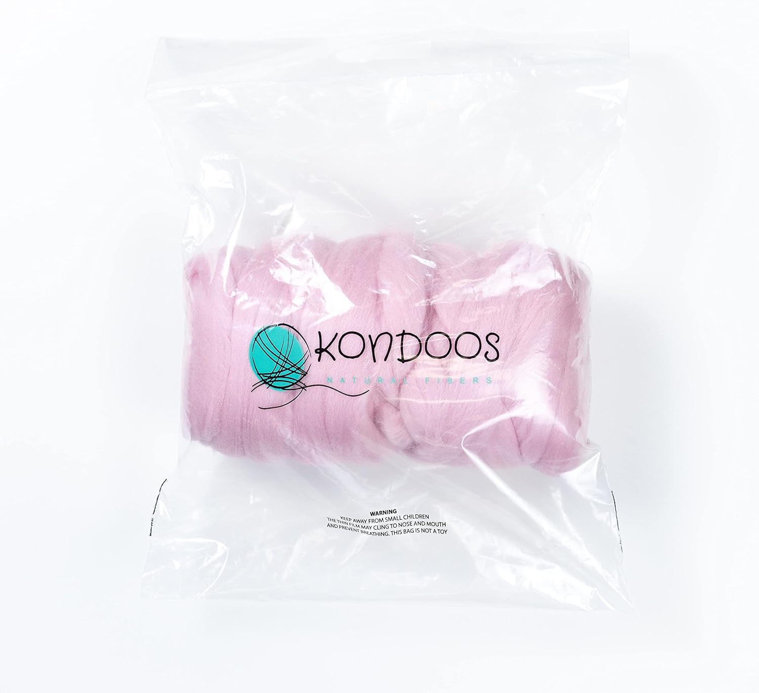 Kondoos Colored Natural Wool roving, 1 lb. Best Wool for Needle Felting, Wet Felting, handcrafts and Spinning. (Baby Pink, 1 lb)