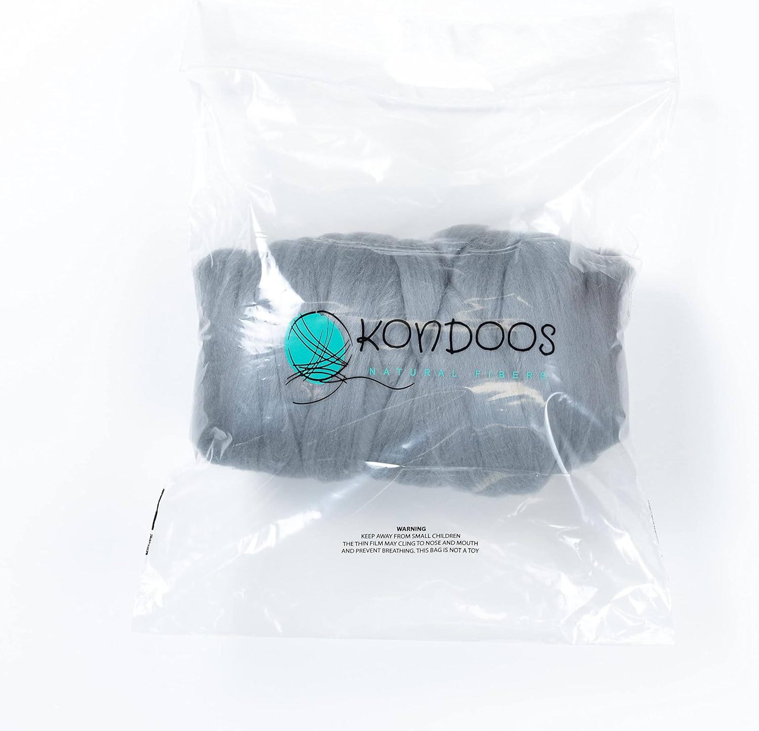 Kondoos Colored Natural Wool roving, 1 lb. Best Wool for Needle Felting, Wet Felting, handcrafts and Spinning. (Silver, 1 lb)