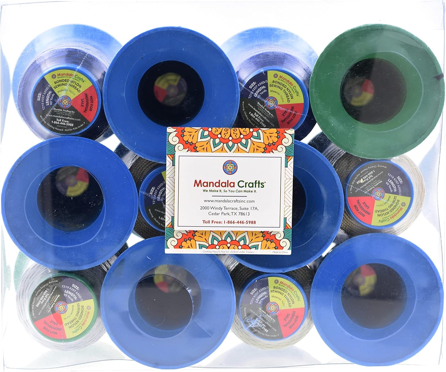 Mandala Crafts Bonded Nylon Thread 12 Neutral Colors Heavy Duty Sewing Threads - 1080 YDs Size 207 630D T210 Tex 210 Thread for Leather Jeans Weaving Outdoor Marine Upholstery Threads