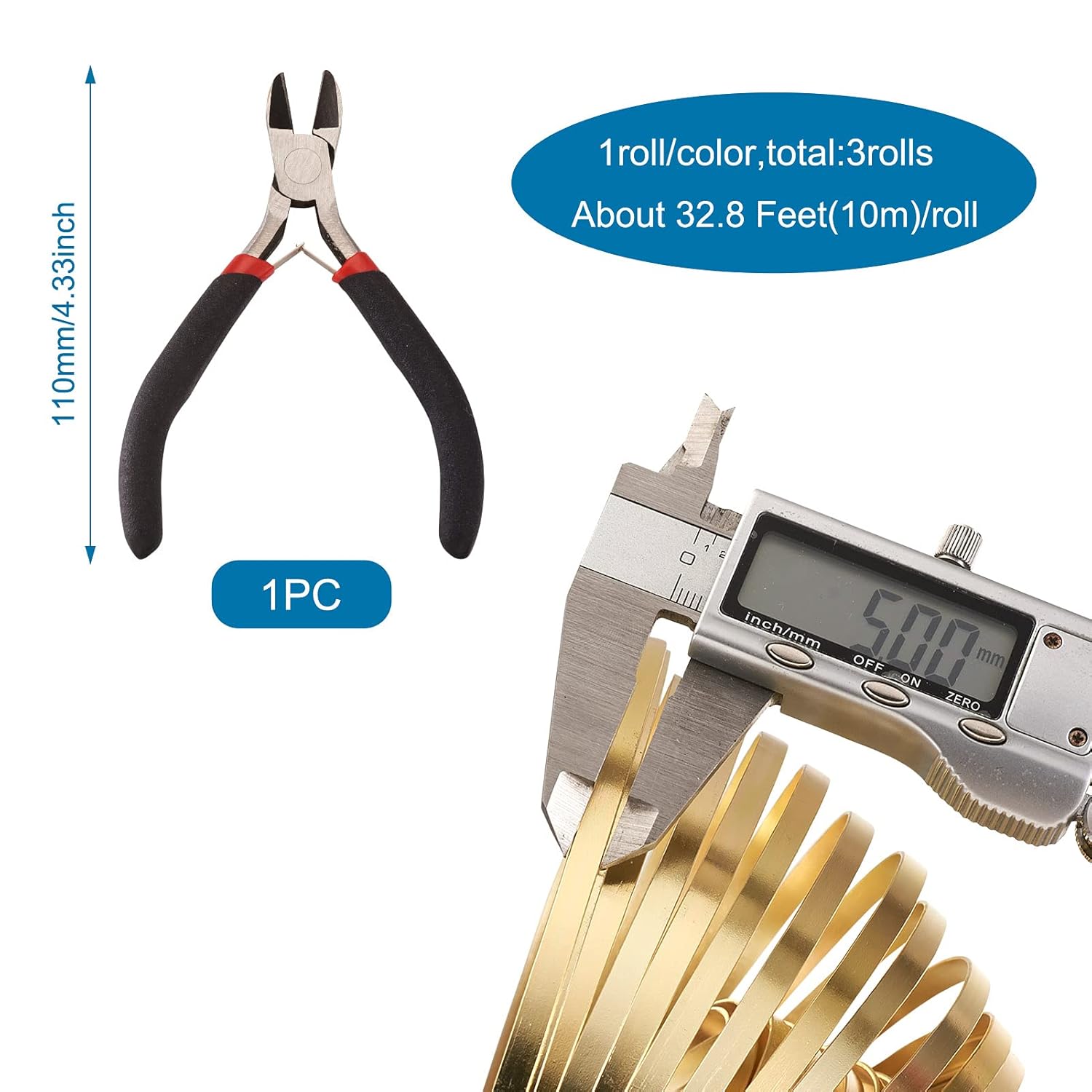 Fashewelry 98Ft 3 Colors Aluminum Flat Wire 5mm Wide Bendable Metal Craft Wire Strip 18 Gauge with Side Cutting Plier for Bezel Sculpting Armature Jewelry Making Gem Metal Wrap